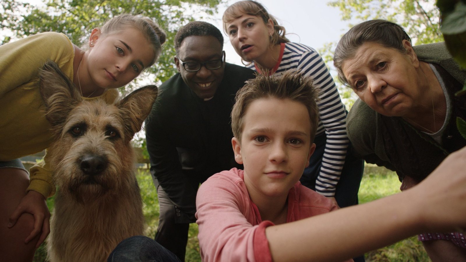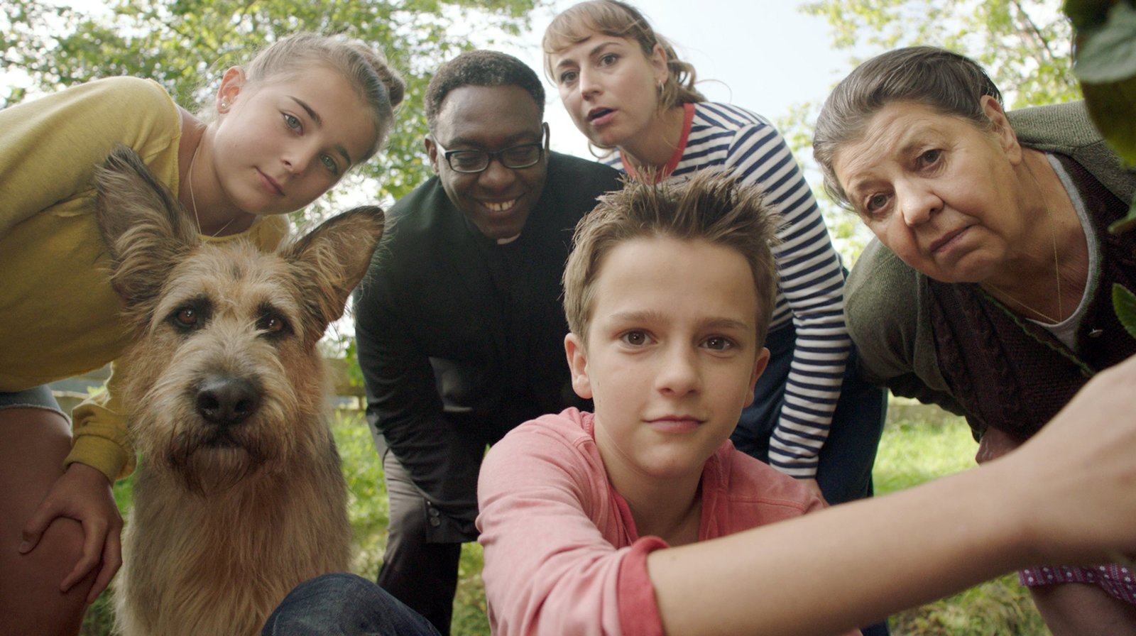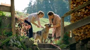 Der Grundstein am Wiesnerhof wird von allen entdeckt. Von links: Fee (Joline Letizia Schwärzler), Racko, Dr. Noah (David Wurawa), Eva (Ines Hollinger) und Theres (Monika Manz). Vorne: Flori (Leon / Lino de Greiff).