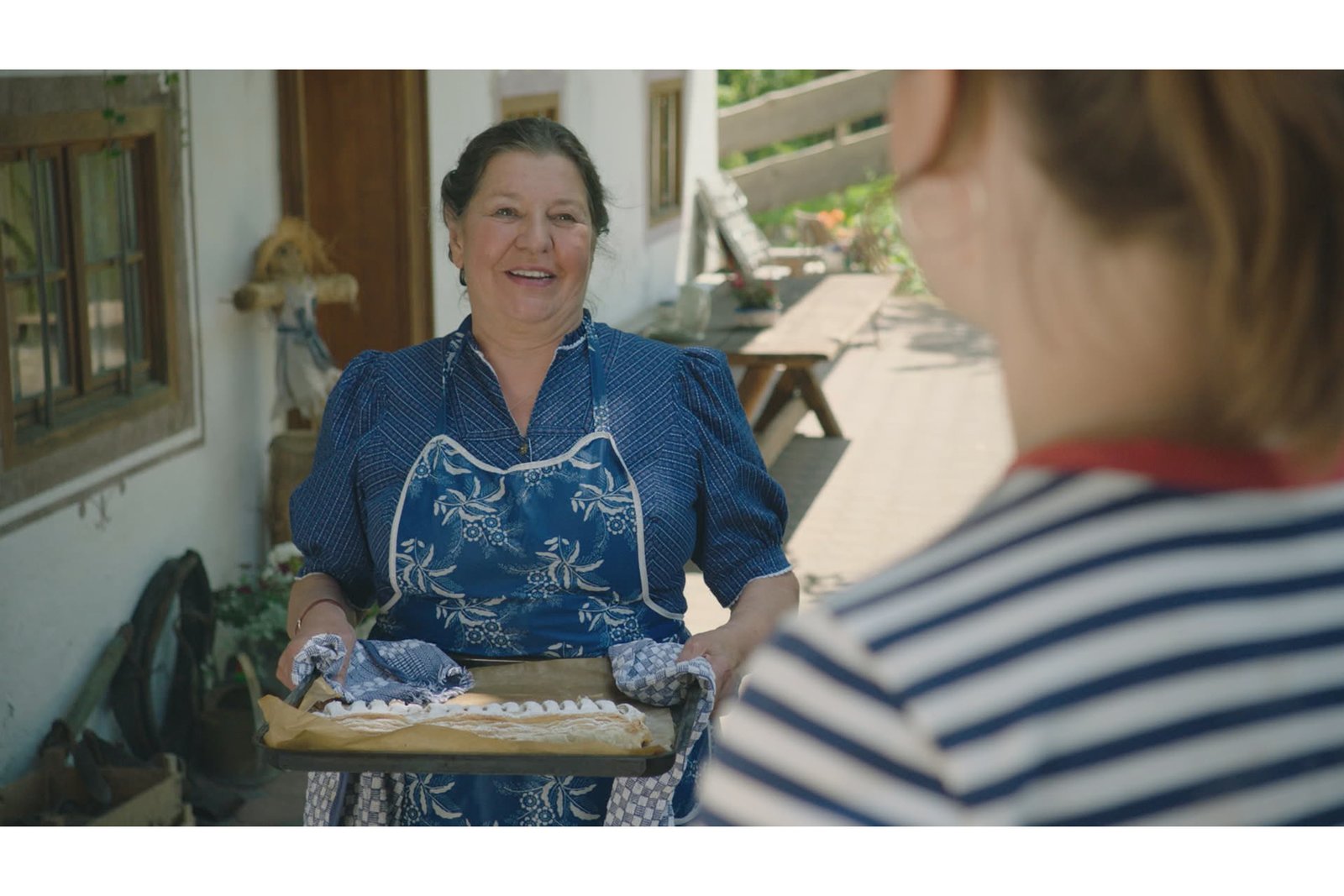 Theres (Monika Manz) überrascht Eva (Ines Hollinger) mit einem frischen Apfelstrudel.