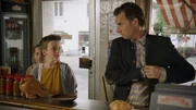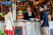 Angerer (Siegfried Terpoorten) trifft in der Metzgerei auf Flori (Leon / Lino de Greiff) und Fee (Joline Letizia Schwärzler).