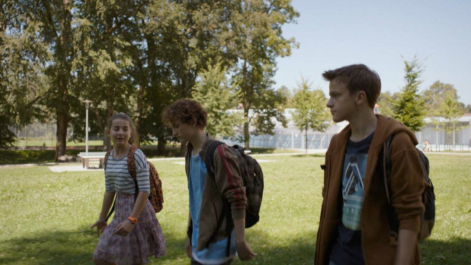 Von links: Fee Lochner (Joline Schwärzler), Gitti Stettner (Sarah Bauerett), Flori (Lino de Greiff), Sebastian Schubert (Niko Jungmann) und Racko (Chewakka).