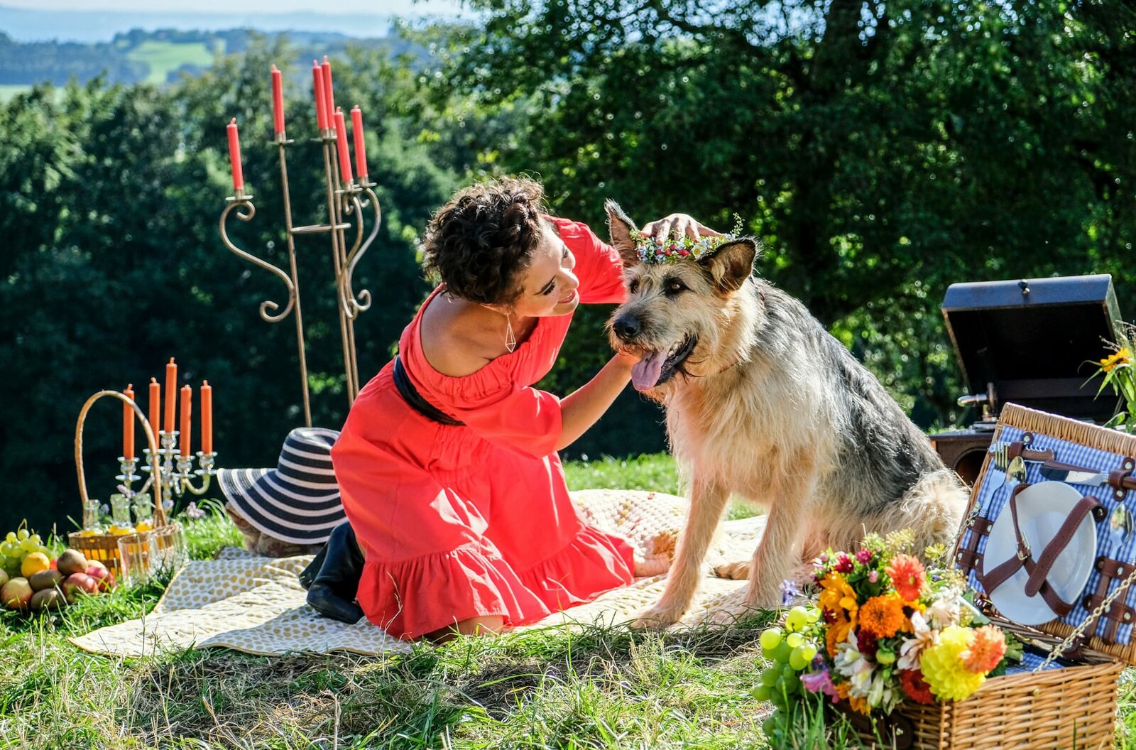 Hilde Kowalski (Bettina Hauenschild) mit der schönen Lola, in die sich Racko verliebt hat.