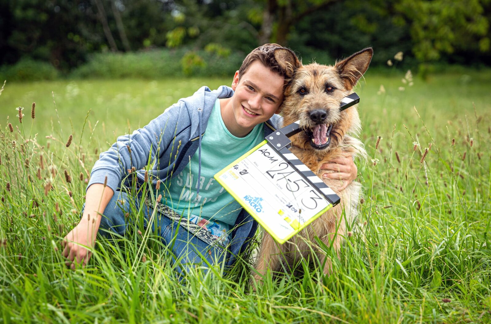 ARD/BR RACKO - EIN HUND FÜR ALLE FÄLLE Racko ist wieder los! Drehstart für die zweite Staffel „Racko – ein Hund für alle Fälle“ in Oberbayern. Nach dem Erfolg der ersten Staffel „Racko – ein Hund für alle Fälle“ haben in der vergangenen Woche die Dreharbeiten für 13 neue Folgen in der Umgebung von München und Miesbach begonnen. Das Filmbüro Münchner Freiheit produziert die Serie unter Federführung des Bayerischen Rundfunks im Auftrag der ARD für Das Erste. Vier Folgen werden 2019 gedreht, neun weitere im Sommer 2020. Zu sehen sind die 28-minütigen Episoden voraussichtlich im Feiertagsprogramm 2021 im Ersten. Im Bild: Flori (Lino de Greiff) mit seinem Racko (Filmhund Chewakka). © ARD/BR/Filmbuero Münchner Freiheit/Philipp Thurmaier, honorarfrei - Verwendung gemäß der AGB im engen inhaltlichen, redaktionellen Zusammenhang mit genannter ARD-Sendung und bei Nennung "Bild: ARD/BR/Filmbuero Münchner Freiheit/Philipp Thurmaier" (S2). ARD-Programmdirektion/Bildredaktion, Tel: 089/5900-24302, Fax: 089/550-1259, bildredaktion@DasErste.de