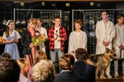 Alle vom Wiesnerhof feiern den großen Helden Racko. Von links: Theres (Monika Manz), Roman Gruber (Markus Brandl), Eva Wiesner (Ines Hollinger), Flori (Lino de Greiff), Martin Lochner (Andreas Tobias), Lucie Schubert (Barbara Romaner), Fee Lochner (Joline Letizia Schwärzler), Sebastian Schubert (Niko Jungmann) und Joseph Angerer (Siegfried Terpoorten).