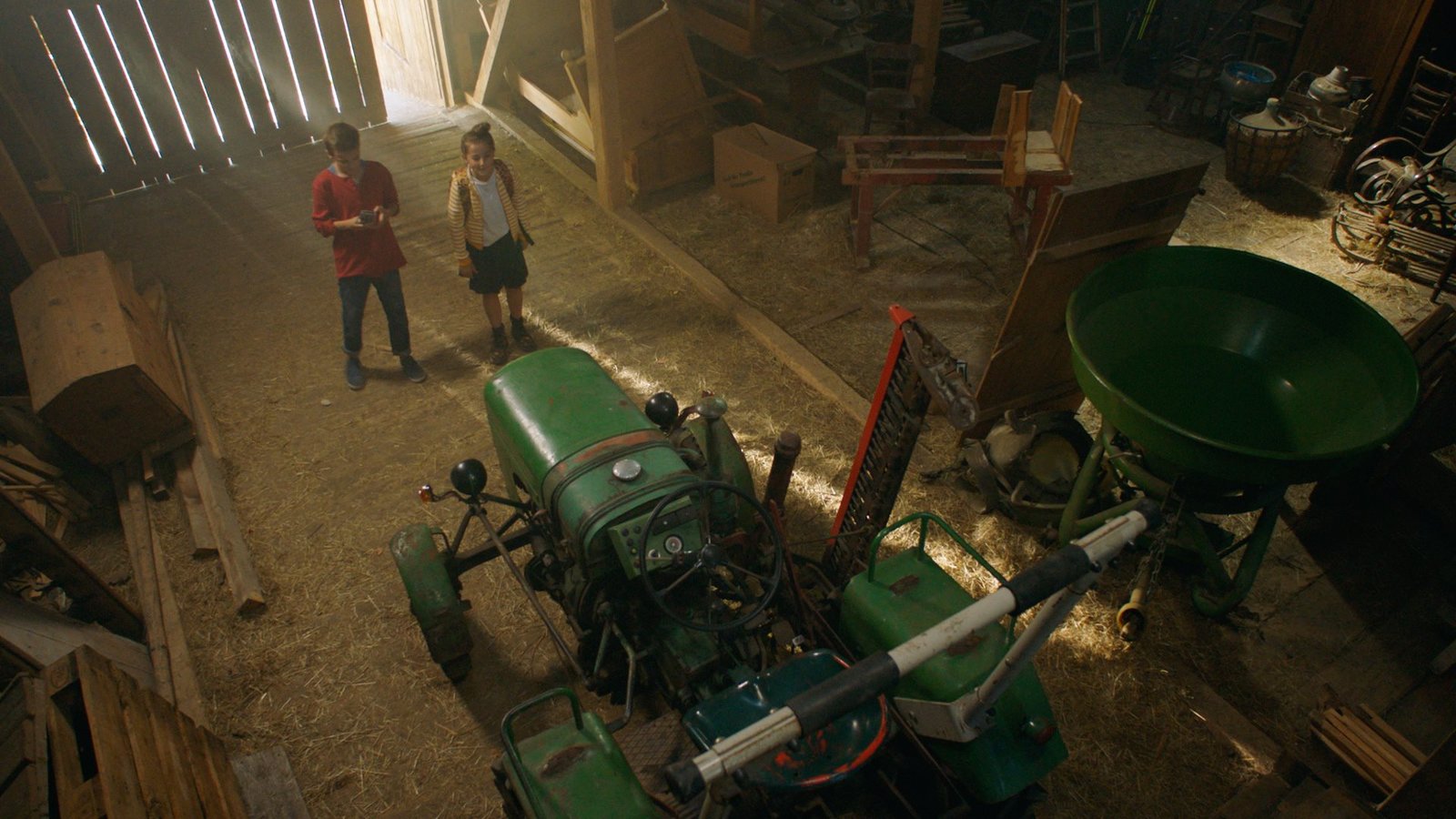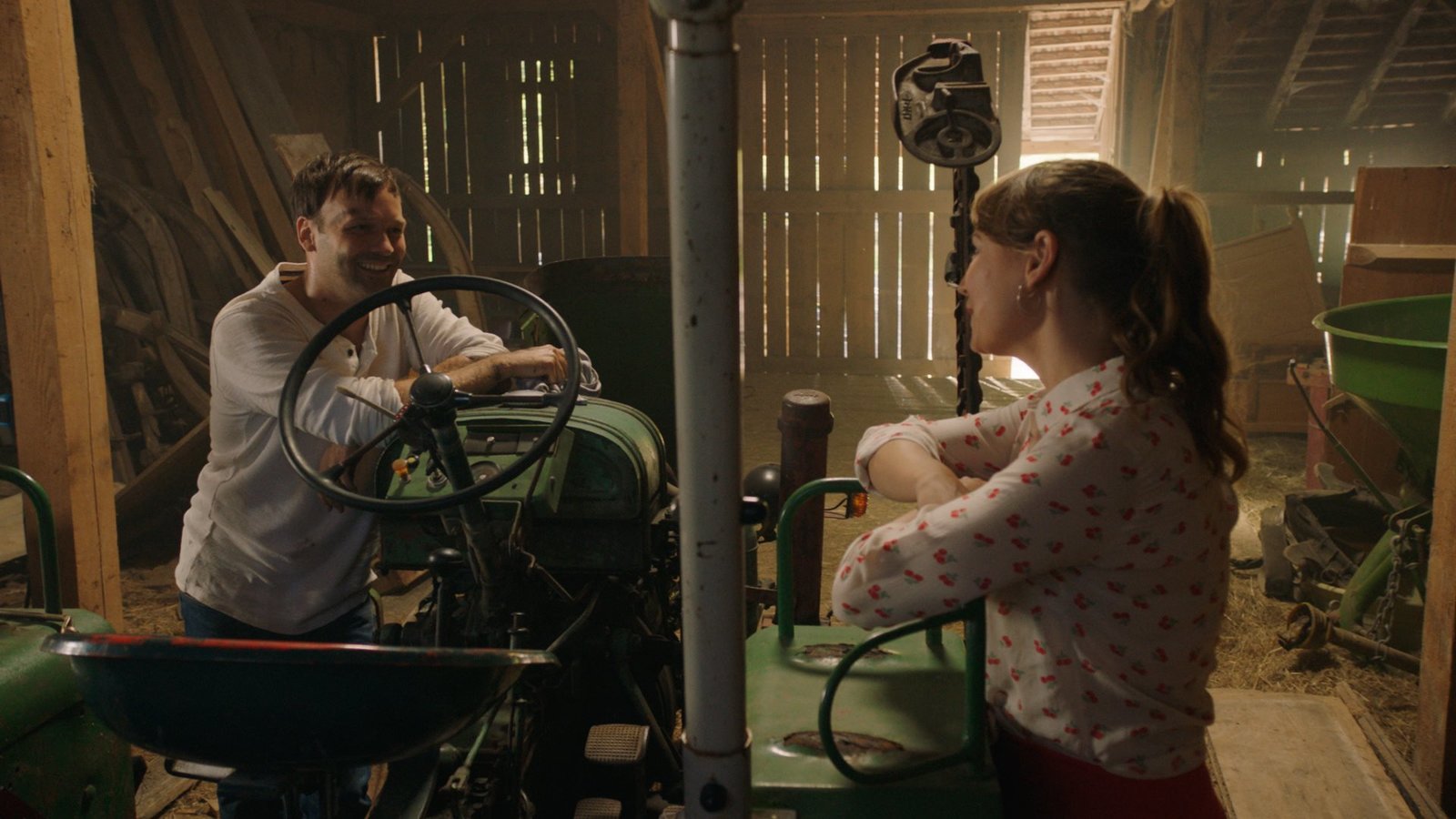 Die VersteigerungEva (Ines Hollinger) erklärt Flori (Leon / Lino de Greiff), dass der Traktor einen emotionalen Wert hat.Bild: © BR/Filmbüro Münchner Freiheit GmbH