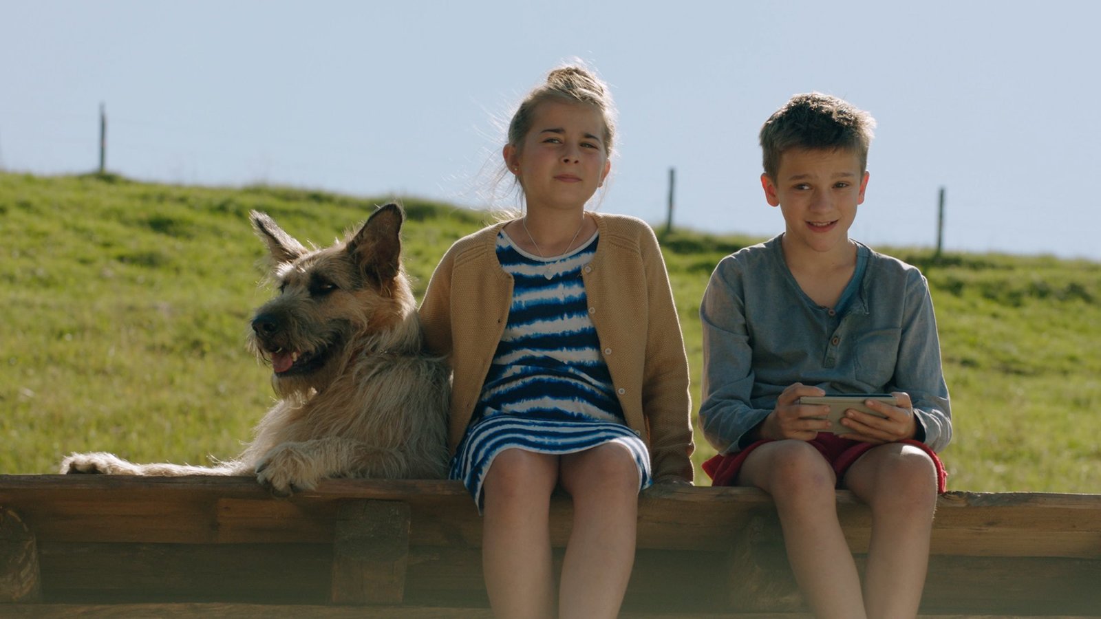 Racko SuperstarFlori (Leon / Lino de Greiff) und Fee (Joline Letizia Schwärzler) zusammen mit Racko - dem besten Hund der Welt.Bild: © BR/Filmbüro Münchner Freiheit GmbH