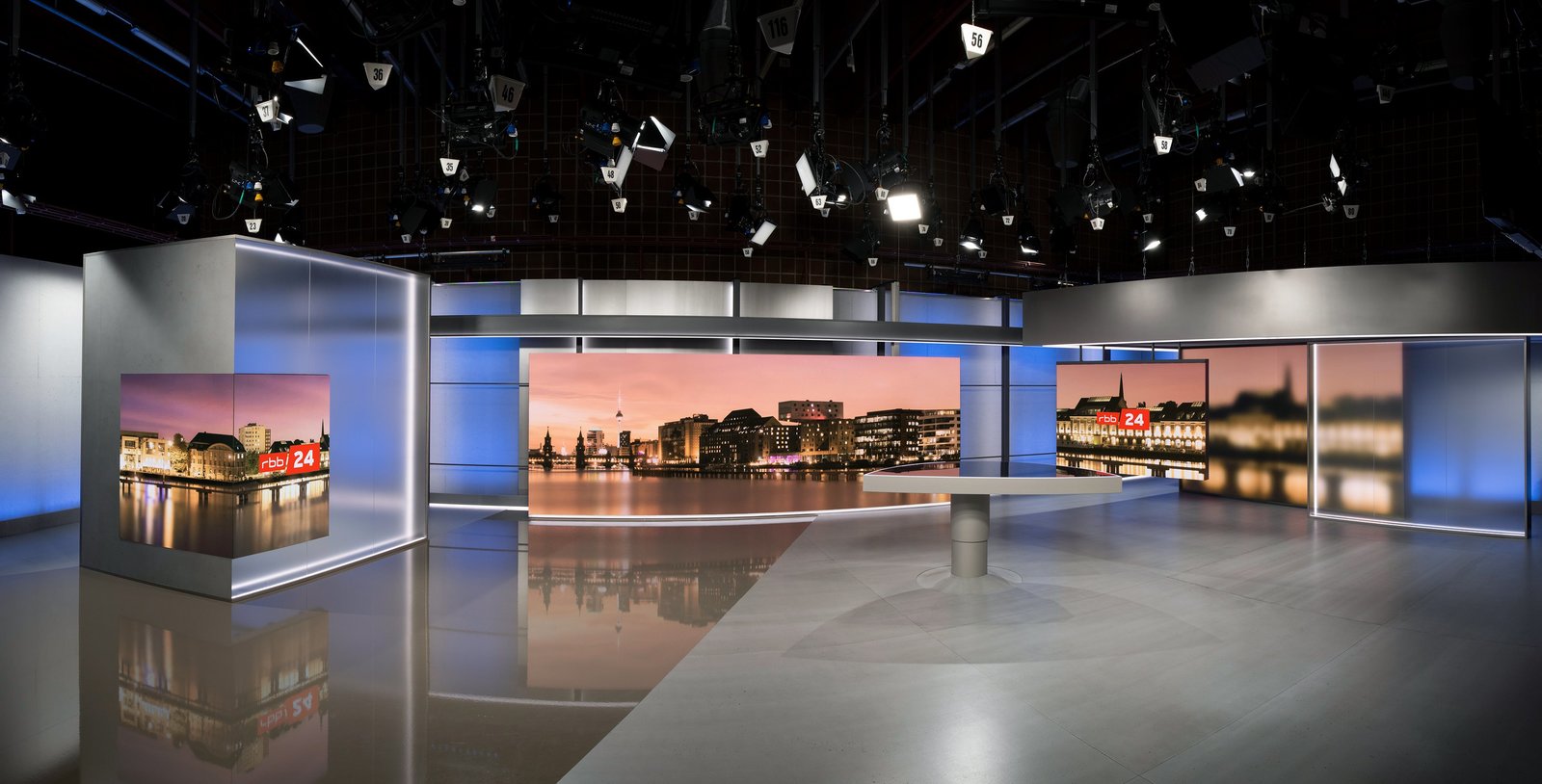 RUNDFUNK BERLIN-BRANDENBURG rbb Abendschau Die Berliner "Abendschau", traditionsreichste Fernsehsendung des Rundfunk Berlin-Brandenburg (rbb), kommt vom 1. September an aus dem modernsten Studio des Senders. Pünktlich zum 60. Geburtstag der "Abendschau" ist das neue, multifunktionale Set um 19.30 Uhr zum ersten Mal live im TV zu sehen. - Das neue Studio im "rbb24"-Look © rbb/Thorsten Jander, honorarfrei - Verwendung gemäß der AGB im Rahmen einer engen, unternehmensbezogenen Berichterstattung im rbb-Zusammenhang bei Nennung "Bild: rbb/Thorsten Jander" (S2+). rbb Presse & Information, Masurenallee 8-14, 14057 Berlin, Tel: 030/97 99 3-12118 oder -12116, pressefoto@rbb-online.deBild: © rbb/Thorsten Jander / rbb Presse & Information
