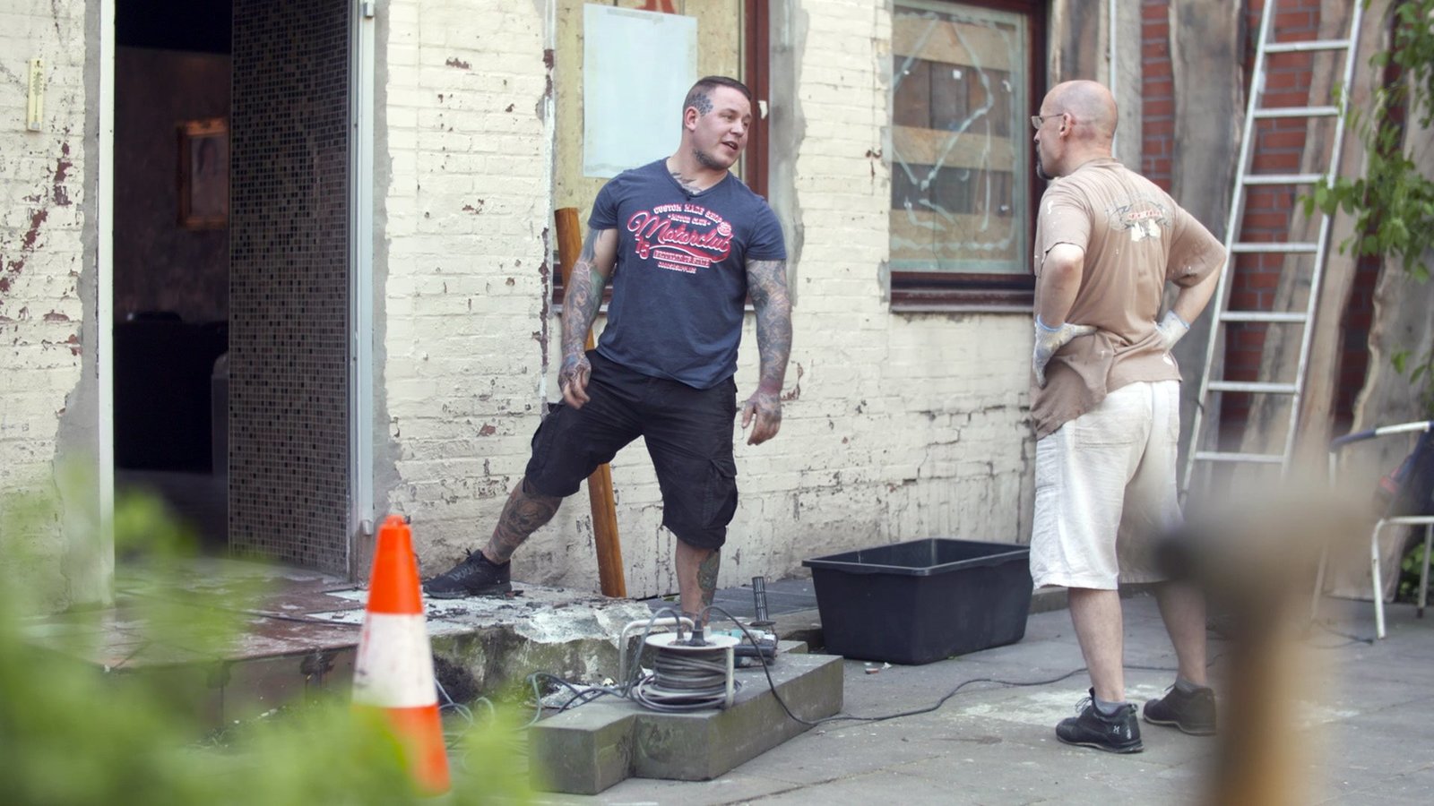 Existenzkampf auf dem Kiez: Hure Laura wird Webcam-GirlDaniel Schmidt (li.) geht neue Wege. Er funktioniert seinen legendären Elbschlosskeller am Hamburger Berg kurzerhand um, für eine Suppenküche für Bedürftige.Bild: © RTL Zwei