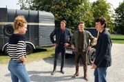 Die PferdeflüsterinRike (Klara Deutschmann) versucht das sensible Dressurpferd "Jacomo" vor den Methoden des brutalen Turnierreiter Dessaulier (Pierre Kiwitt, li.), ihrem Bruder Ferdinand (Shenja Lacher) und Christian (Alexander Khuon) zu schützen.Bild: © ARD Degeto/Kerstin Stelter