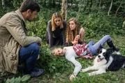 Die PferdeflüsterinTitelmotiv/Presseheft Rike Wildenstein (Klara Deutschmann) mit "Jacomo". Im Hintergrund ihr Bruder Ferdinand (Shenja Lacher), ihre Mutter Elsa (Ulli Meier) und der Tierarzt Dr. Georg Stadelmeier (Helfried von Lüttichau, re.)Bild: © ARD Degeto/Hendrik Heiden
