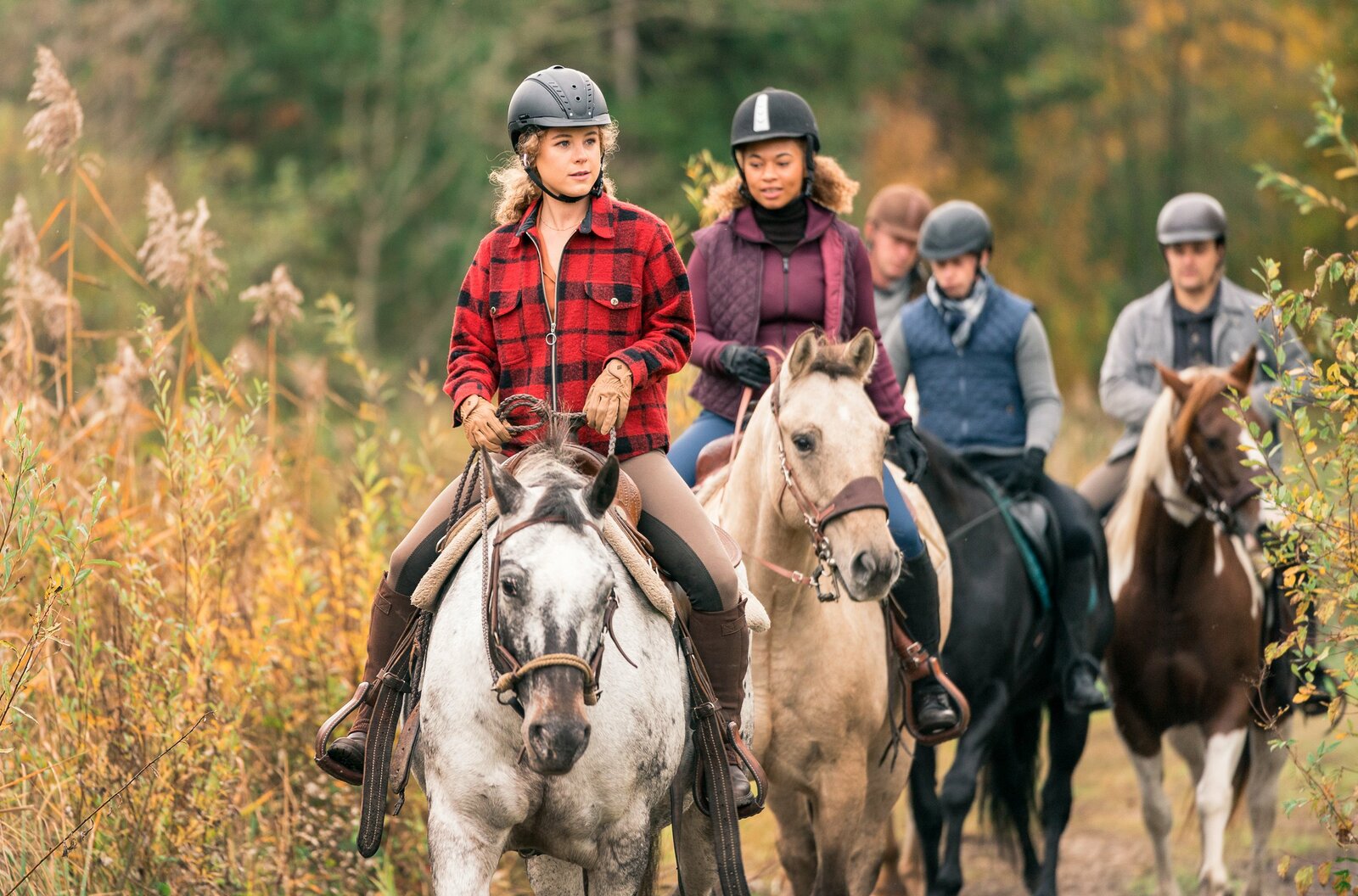 NeuanfangRike Wildenstein (Klara Deutschmann) und ihre Reitschüler.Bild: © ARD Degeto/Marc Reimann