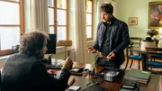 Sprung ins LebenWer hat das Pferd zurückgelassen? Das fragen sich Dr. Georg Stadelmeier (Helmfried von Lüttichau) als Bürgermeister und Ortspolizist Jan Meier (Stefan Pohl).Bild: © ARD Degeto/Marc Reimann