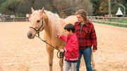 Der Junge und das PferdRike (Klara Deutschmann) hat Hoffnung: Vielleicht kann Jacomo die unbekannte Palomino-Stute besänftigen.Bild: © SWR/ARD Degeto/Marc Reimann