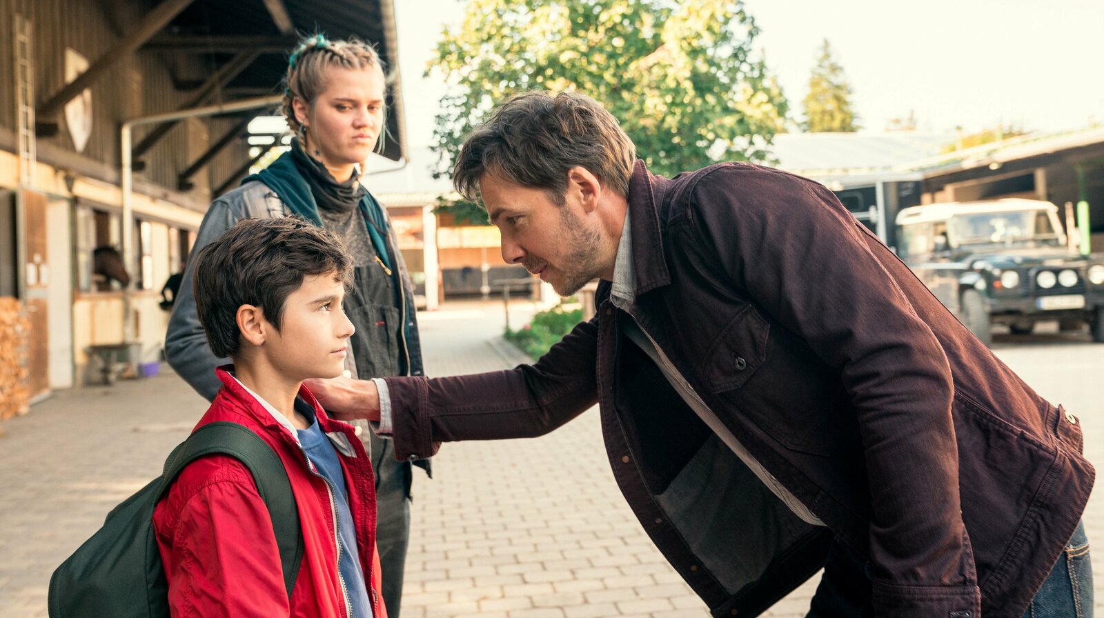 Der Junge und das PferdPolizist Jan (Stefan Pohl) will bei Josch (Mika Ullritz) endlich seiner Vaterrolle gerecht werden. Tabea (Nele Trebs), beobachtet es skeptisch.Bild: © ARD Degeto/Marc Reimann