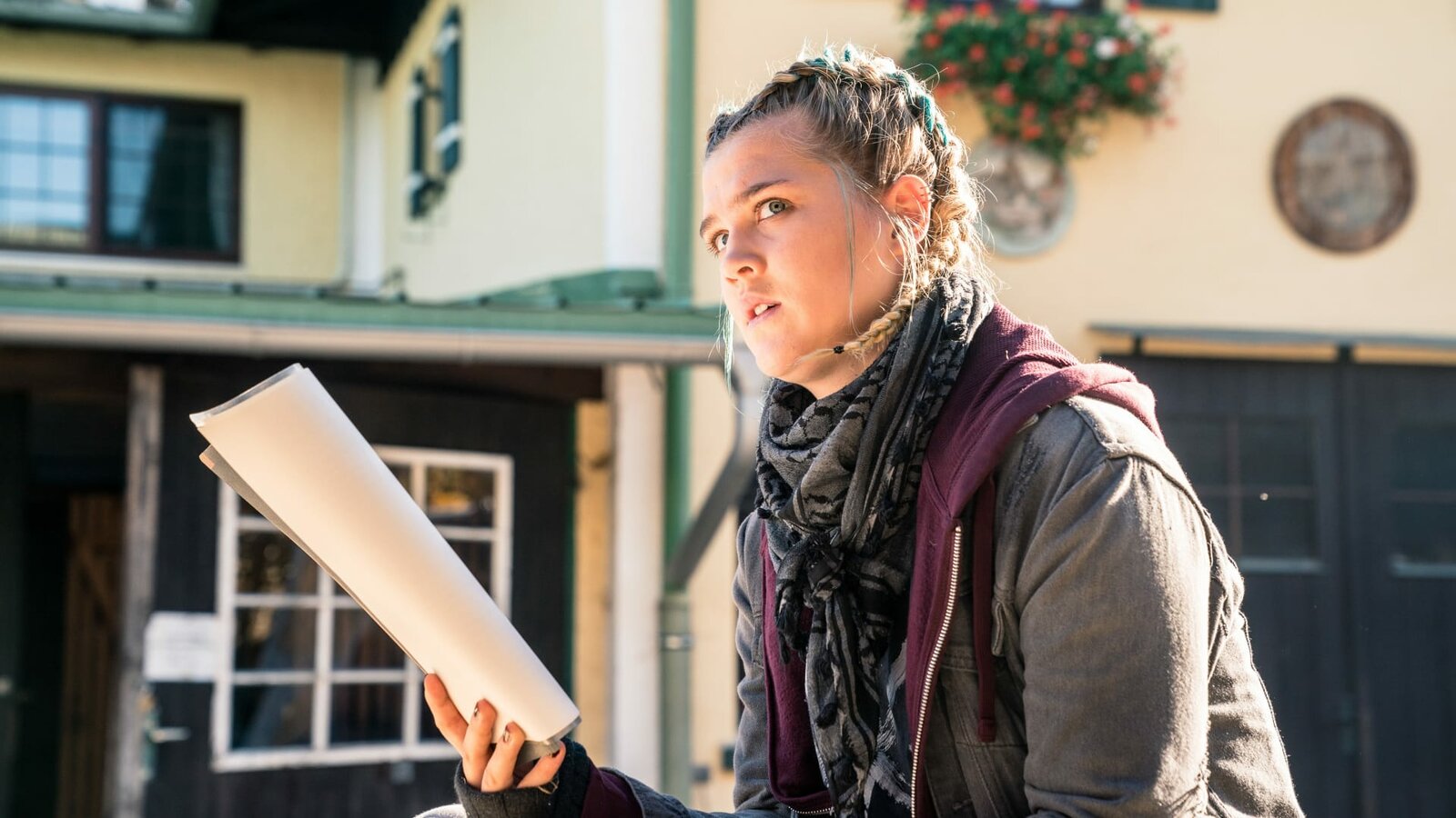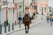 Jacomo und der WolfRike (Klara Deutschmann) trabt lässig durch das Dorf.Bild: © ARD Degeto/Hendrik Heiden