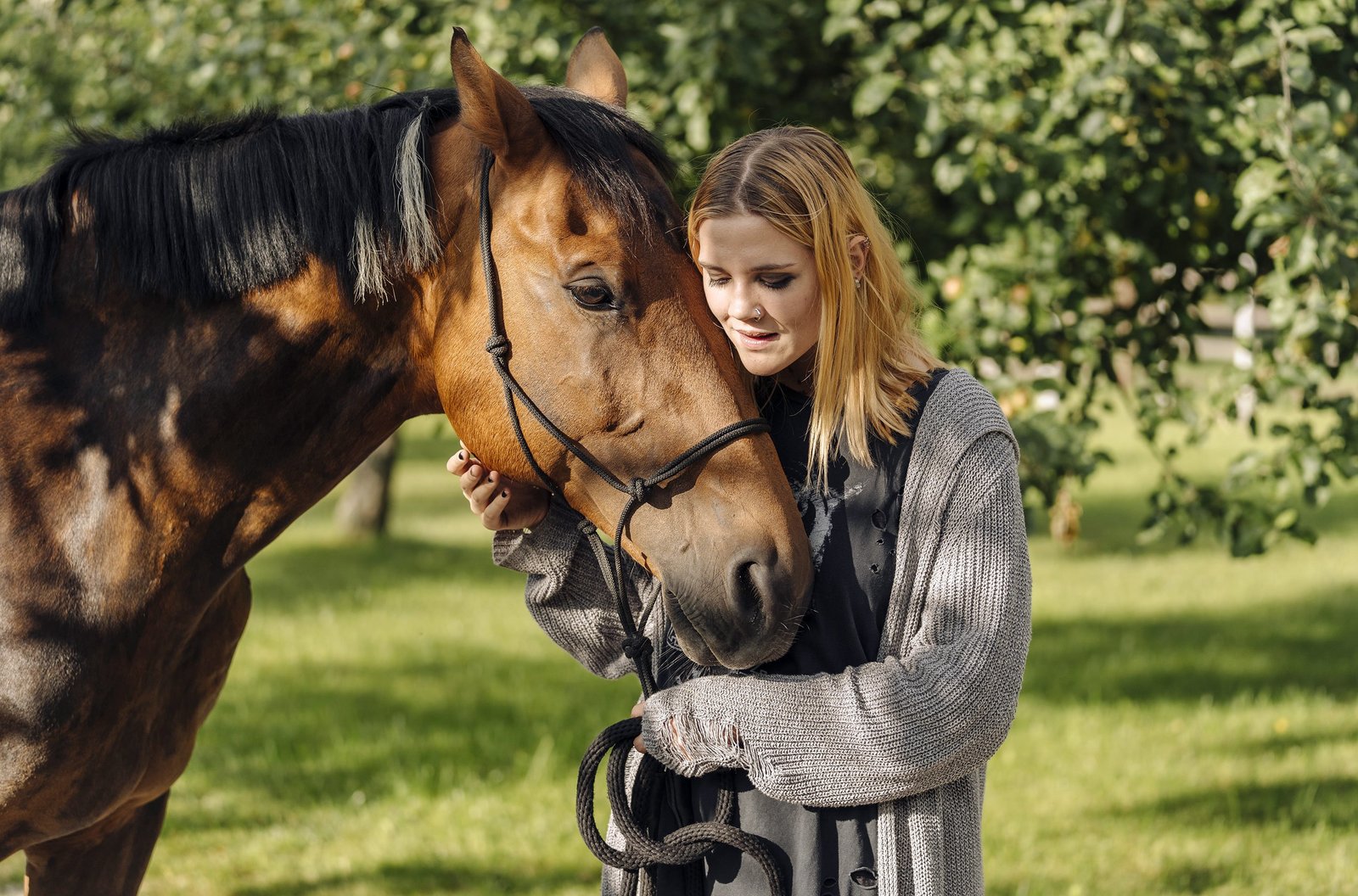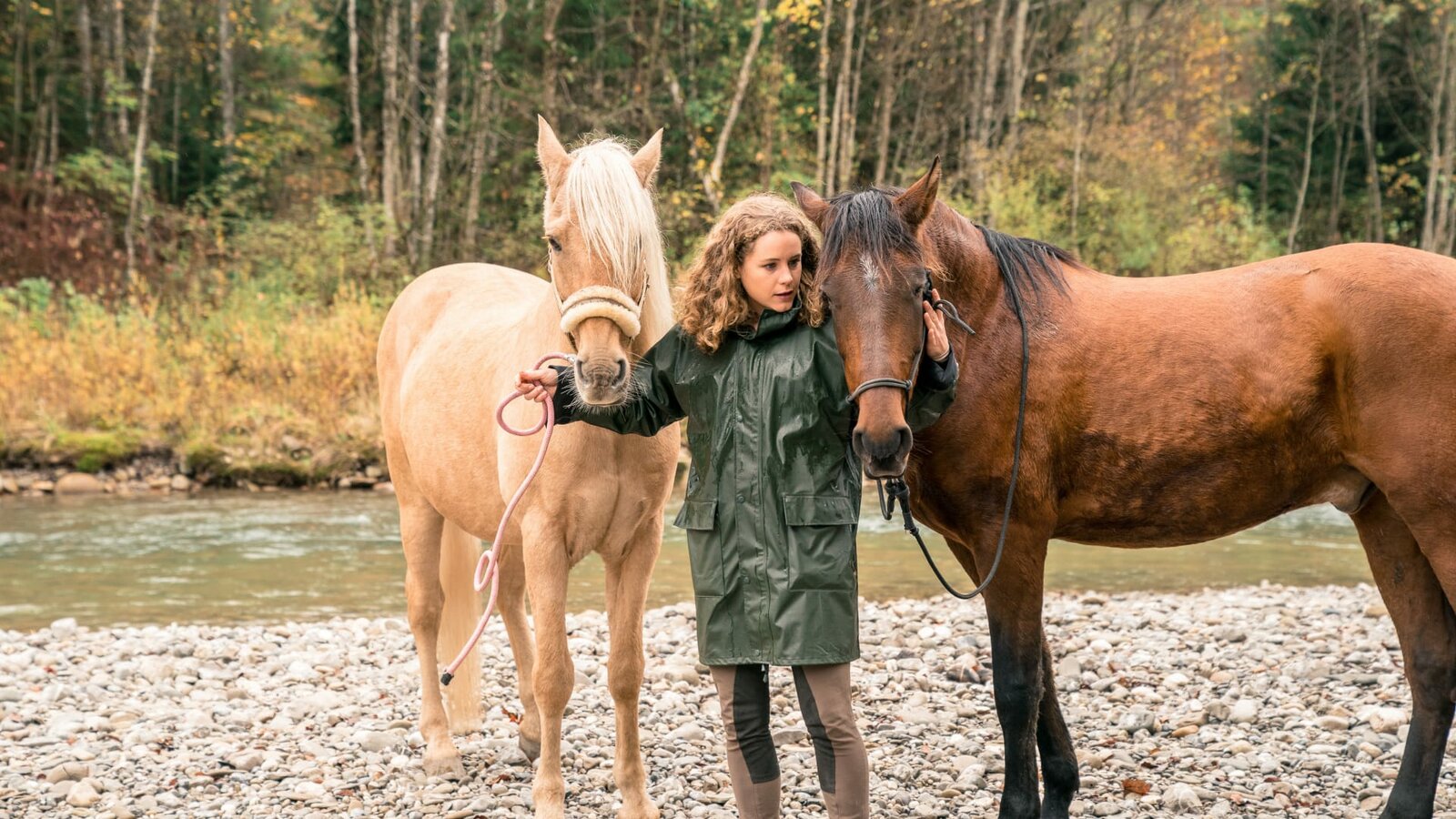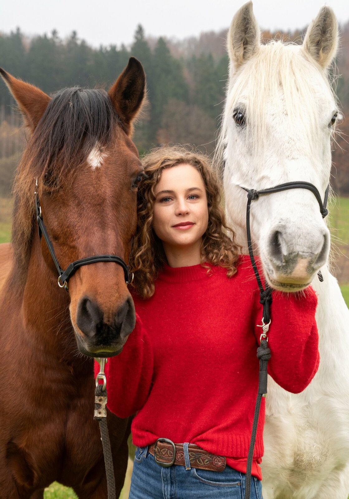 NeuanfangRieke Wildenstein (Klara Deutschmann) mit den Pferden Jacomo und Luana.Bild: © ARD Degeto/Marc Reimann