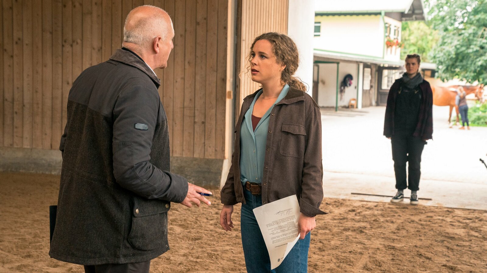 NeuanfangBruder Ferdinand (Shenja Lacher) will Rike (Klara Deutschmann) ihren Hengst Jacomo nicht zurückgeben.Bild: © ARD Degeto/Marc Reimann