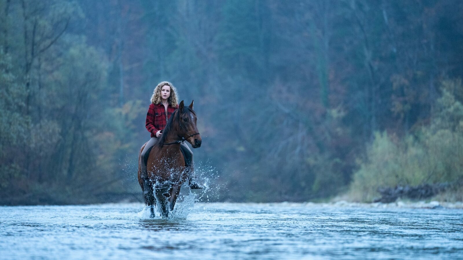 Jacomo und der WolfRike (Klara Deutschmann) trabt mit Jacomo am Waldrand entlang.Bild: © ARD Degeto/Hendrik Heiden