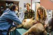 Jacomo und der WolfGeorg Stadelmaier (Helmfried von Lüttichau, li.) behandelt den verletzten Wolf. Moritz Leytner (Max Woelky, Mitte) und Rike (Klara Deutschmann) assistieren ihm.Bild: © ARD Degeto/Hendrik Heiden