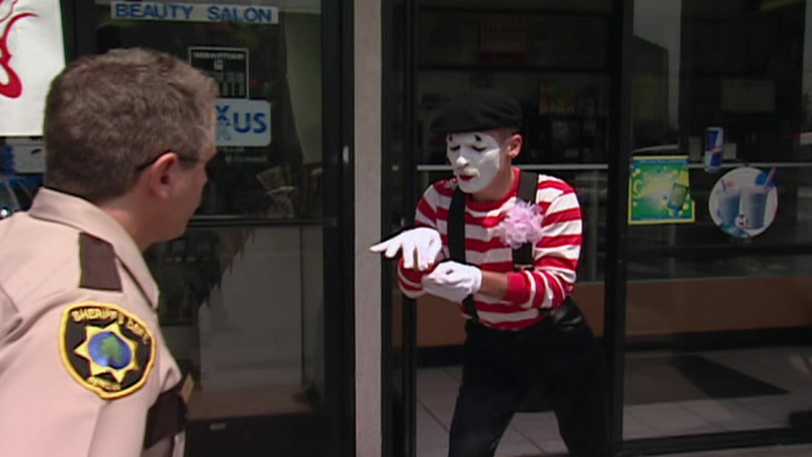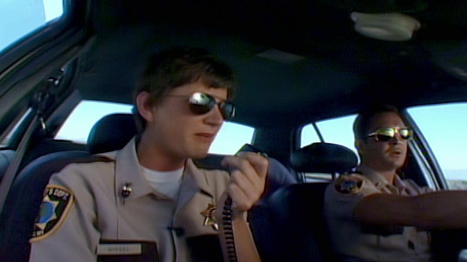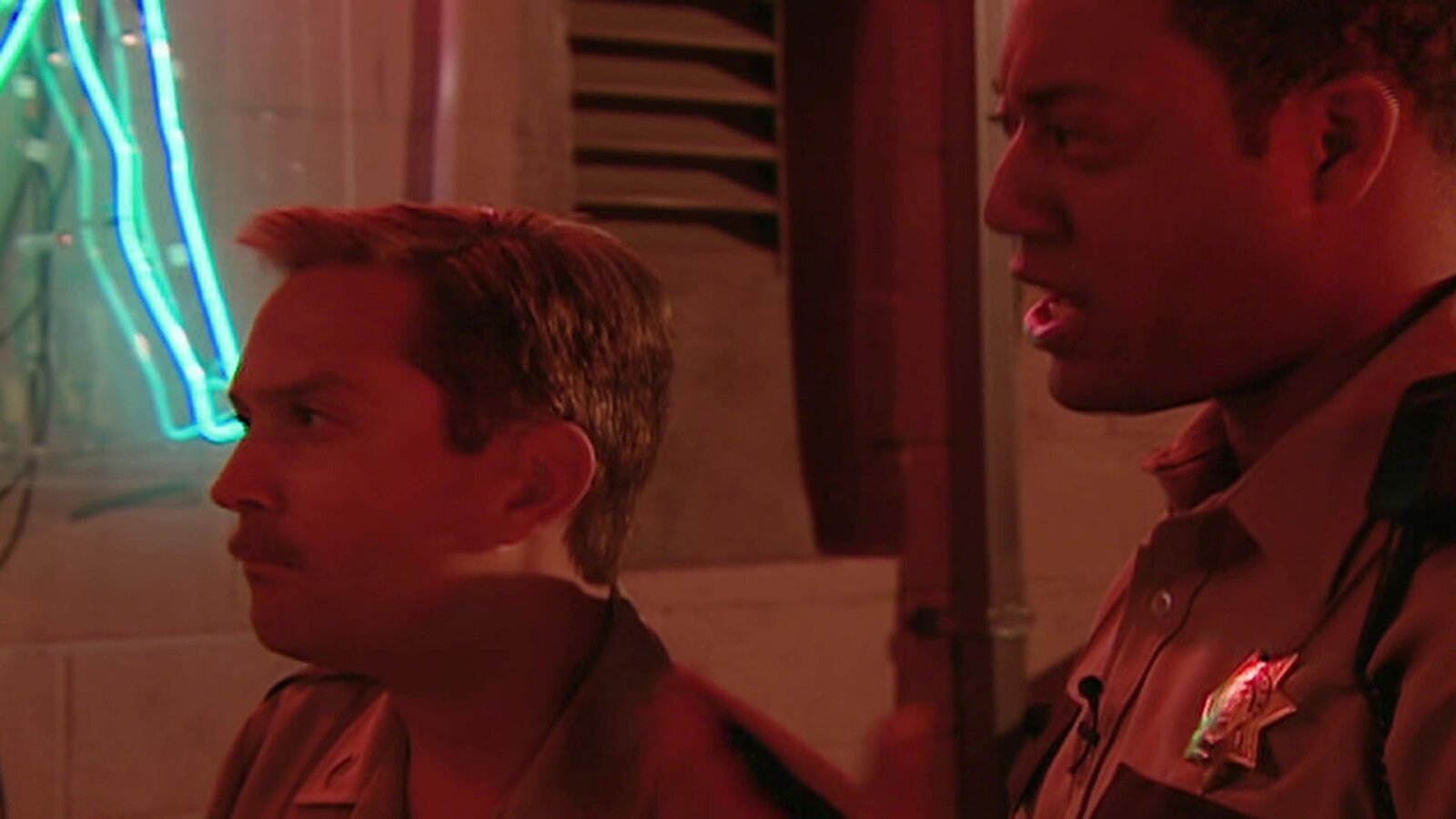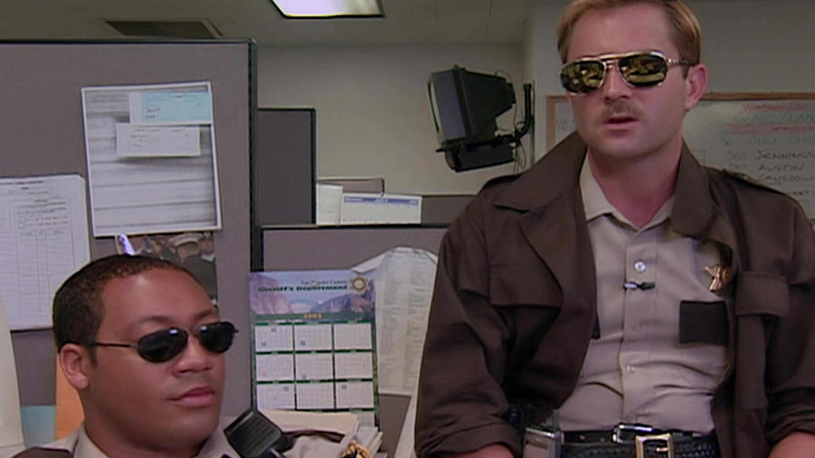 Fünfzehn Minuten RuhmVorne, l-r: Deputy S. Jones (Cedric Yarbrough), Deputy Travis Junior (Robert Ben Garant)Bild: © ViacomCBS
