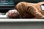 Der KommissarGünter (Wolfgang Winkler) hat einen Schlag auf den Kopf bekommen und liegt bewußtlos auf der Straße.Bild: © ARD/Kai Schulz