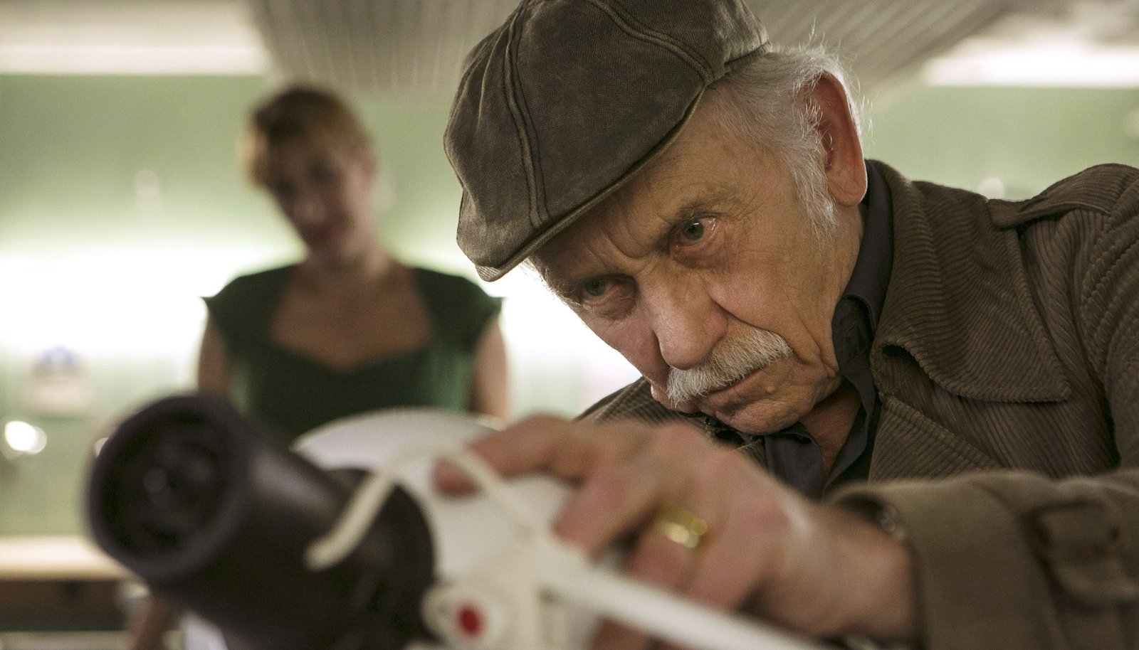 Echte FreundeEdwin (Tilo Prückner, r.) tauscht die Glühbirne bei der Schreibtischlampe von Dr. Rosalind Schmidt (Helene Grass, im HG) aus - er hat etwas gut zu machen. tartet mit Dr. Schmidt noch mal „neu“ und geht, die Schreibtischlampe hat einen Wackelkontakt, undBild: © ARD/Kai Schulz