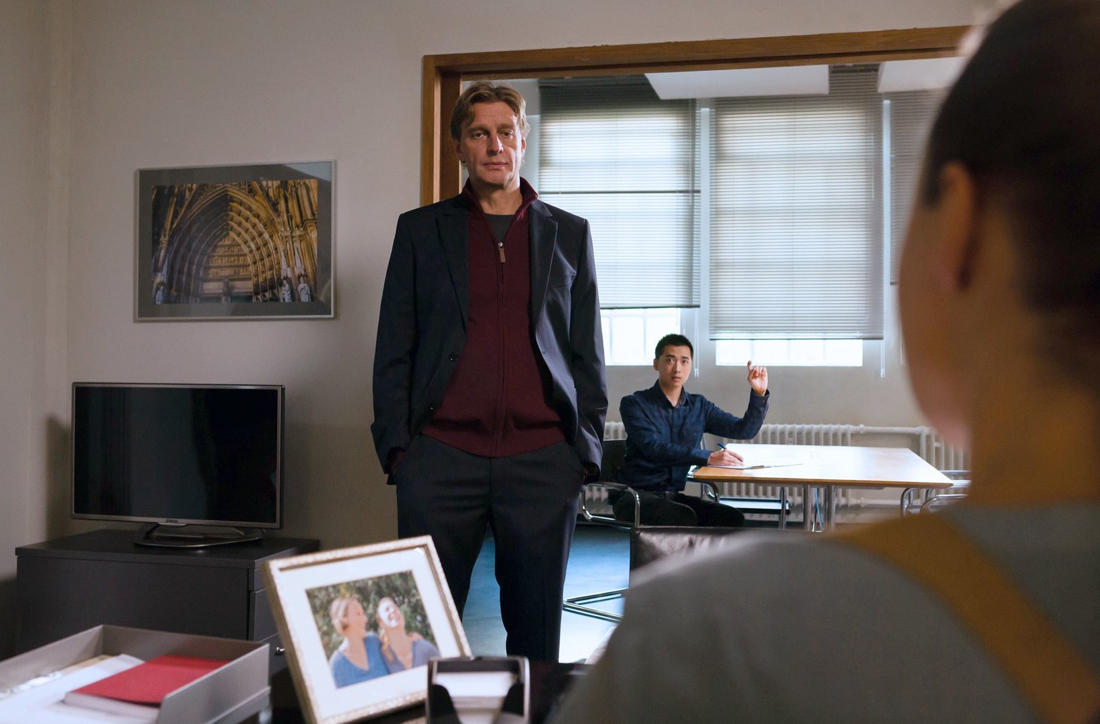 Wunder gescheh'nARD PROGRAMMDIREKTION, RENTNERCOPS, neue Vorabendserie (8 Folgen), Folge 3 "Wunder gescheh'n", am Dienstag (14.04.15) um 18.50 Uhr im Ersten. Dezernatsleiterin Vicky Adam (Katja Danowski, r.) und Kommissarsanwärter Hui Ko (Aaron Le, l.) beobachten das Verhör.Bild: © ARD/Kai Schulz