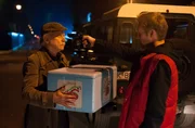 Atemlos durch die NachtARD PROGRAMMDIREKTION, RENTNERCOPS, neue Vorabendserie (8 Folgen), Folge 6 "Atemlos durch die Nacht", am Dienstag (05.05.15) um 18.50 Uhr im Ersten. Von wegen sicheres Zeugenhaus: Edwin (Tilo Prückner, l.) nimmt die Pizzalieferung entgegen, der Bote entpuppt sich als Killer Thomas (Raiko Küster, r.).Bild: © ARD/Kai Schulz