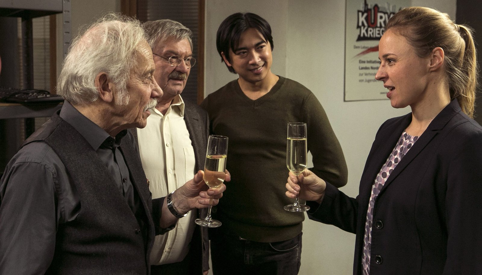 Verdamp lang herARD PROGRAMMDIREKTION, RENTNERCOPS, neue Vorabendserie (8 Folgen), Folge 1 "Verdamp lang her", am Dienstag (24.03.15) um 18.50 Uhr im Ersten Dezernatsleiterin Vicky Adam (Katja Danowski, r.) und ihr neuer Kommissarsanwärter Hui Ko (Aaron Le, l.) stehen bei Edwin vor der Tür. Der Beamte in Rente soll Ihnen bei der Lösung eines alten Falls helfen.Bild: © ARD/Kai Schulz
