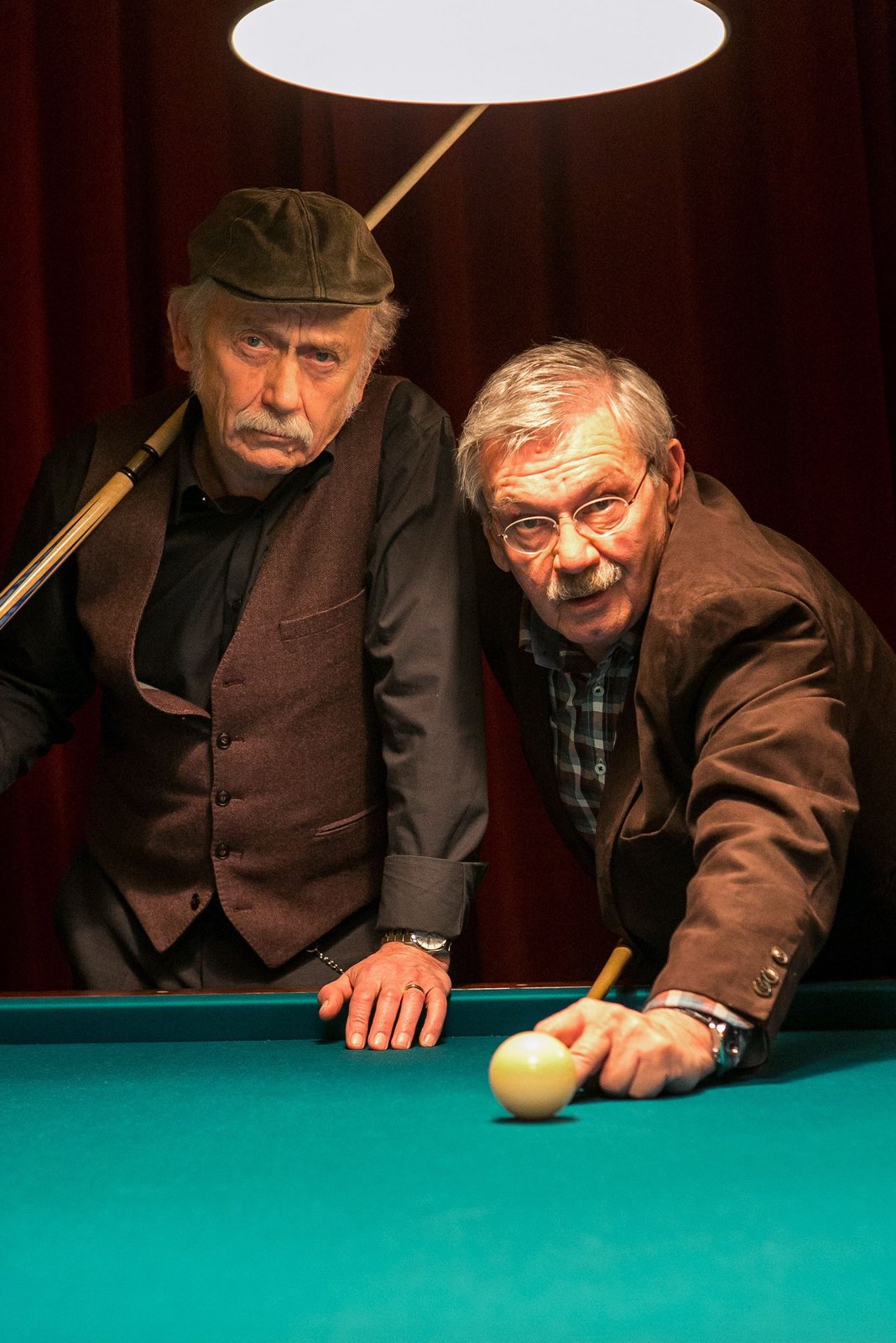 Echte FreundeEdwin (Tilo Prückner, l.) und Günter (Wolfgang Winkler, r.) haben keine Zeit für Billard, ein Stammtischbruder ist erstochen worden.Bild: © ARD/Kai Schulz