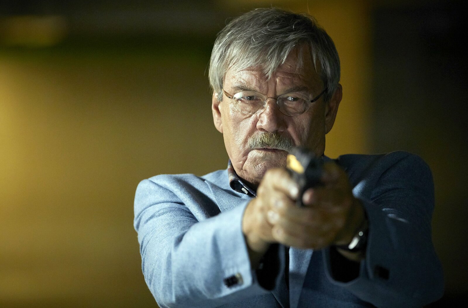 BankgeheimnisDr. Schmidt ist in Lebensgefahr, Edwin Bremer (Tilo Prückner) zückt die Pistole.Bild: © WDR/ARD/Kai Schulz