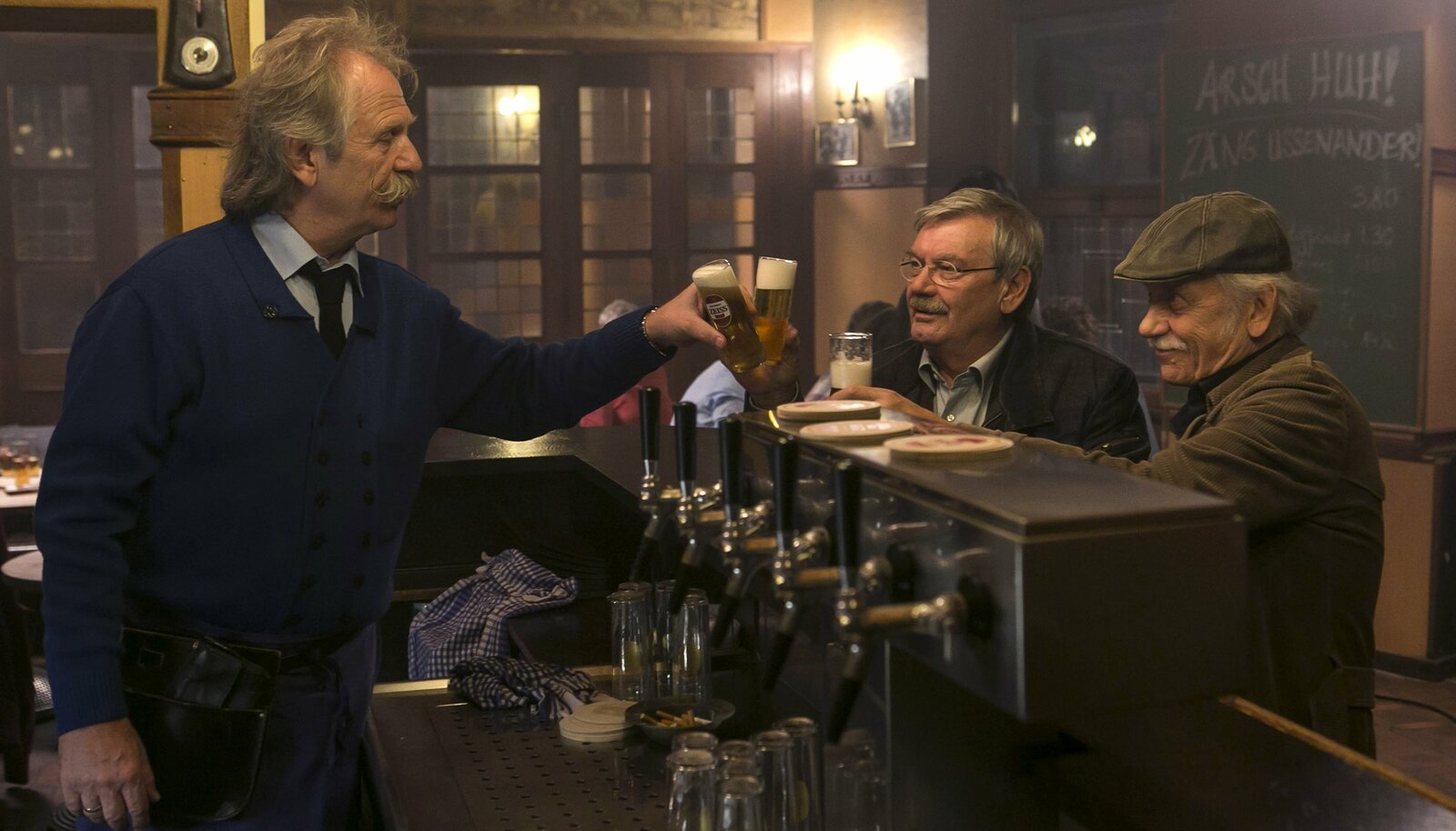 Echte FreundeGünter (Wolfgang Winkler, l.) und Köbes (Henning Krautmacher, r.) sind ratlos - wer hat den Stammtischbruder erstochen?Bild: © ARD/Kai Schulz