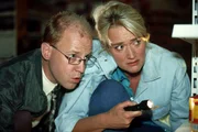 Bitte lächeln, Herr SchumannJetzt hat Rita (Gaby Köster) Schumann (Lutz Herkenrath) endlich da, wo sie ihn immer haben wollte. Behauptet sie zumindest...Bild: © RTLplus