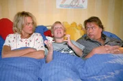 Sandras AbenteuerSeit Sandra mit Eike Schluß gemacht hat, terrorisiert sie Mutter Rita (Gaby Köster), Bruder Markus (Marius Theobald, M.) und Vater Horst (Frank Vockroth) mit Hard-Rock-Musik.Bild: © RTL