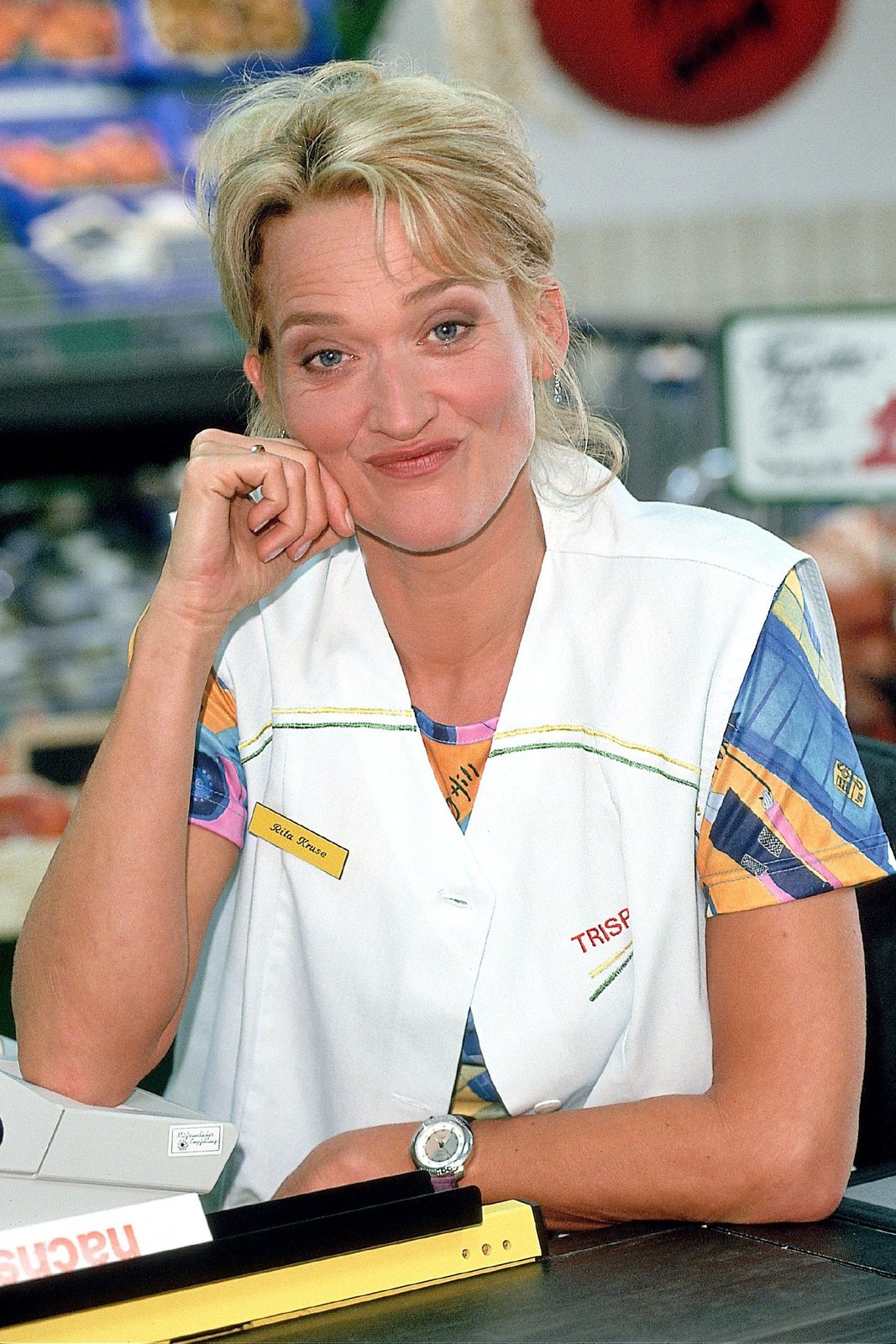 Eine Frau sieht rot2. Staffel: Gaby Köster als Supermarktkassiererin Rita KruseBild: © RTLplus / Guido Engels