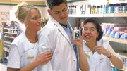 Ich war'sRitas Sohn Markus (Marius Theobald, M.) bekommt mit, dass Rita (Gaby Köster, r.) völlig entnervt von Filialleiter Schumann ist. Aber deswegen gleich Drohbriefe schreiben?! (l. Franziska Traub, hinten Simon Lardon)Bild: © RTL