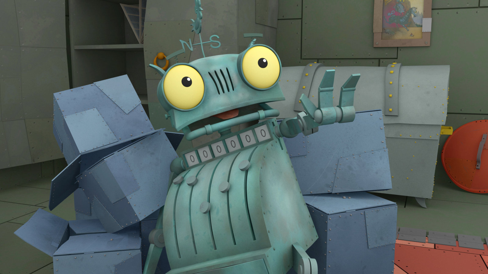 Der KometBö entdeckt einen Kometen, der sich mit großer Geschwindigkeit auf Schrottland zu bewegt.Bild: © ZDF/Caligari