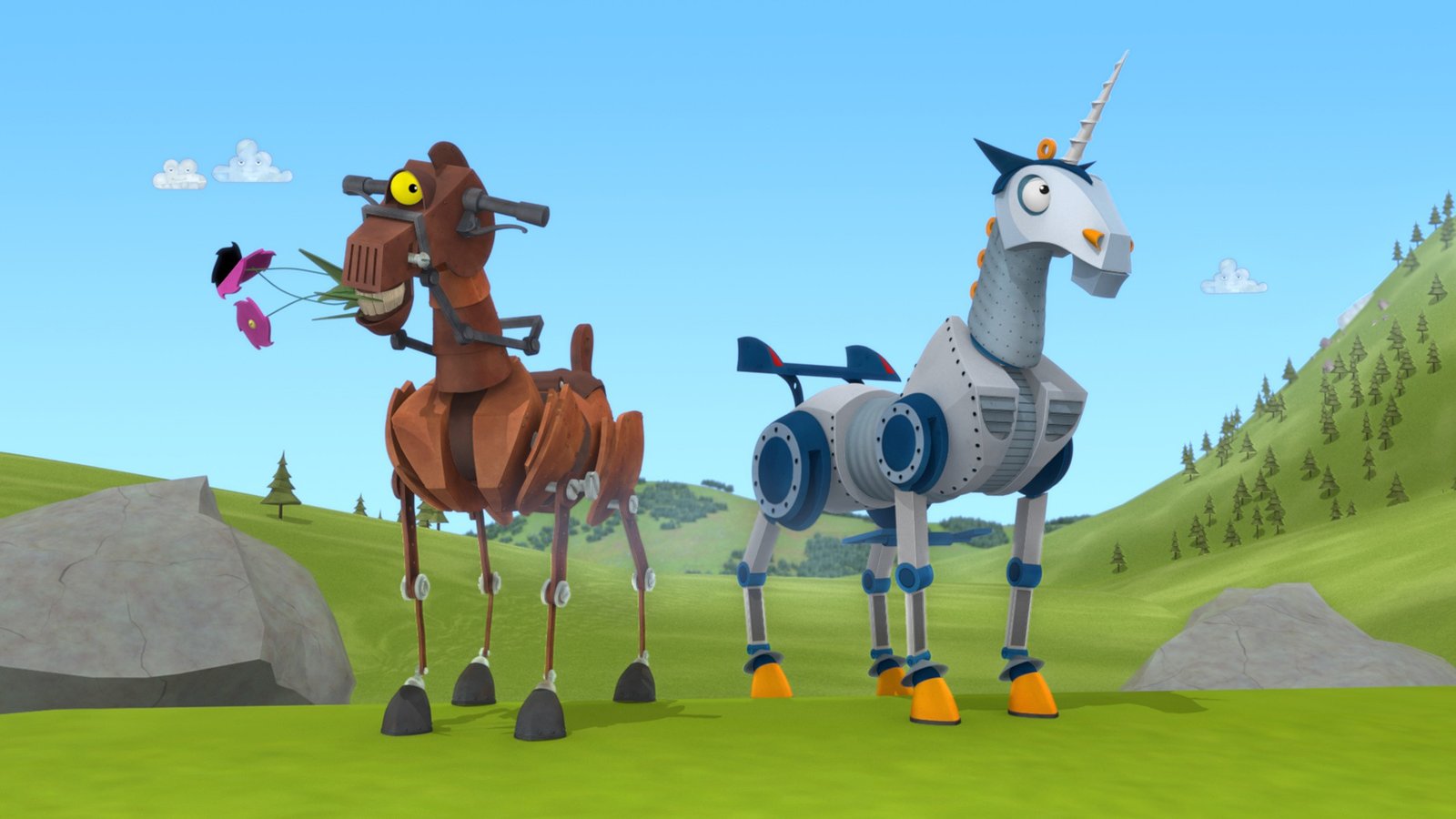 Feuerstuhl verliebt?Feuerstuhl hat sich in ein fremdes Einhornpferd verliebt.Bild: © ZDF/Caligari