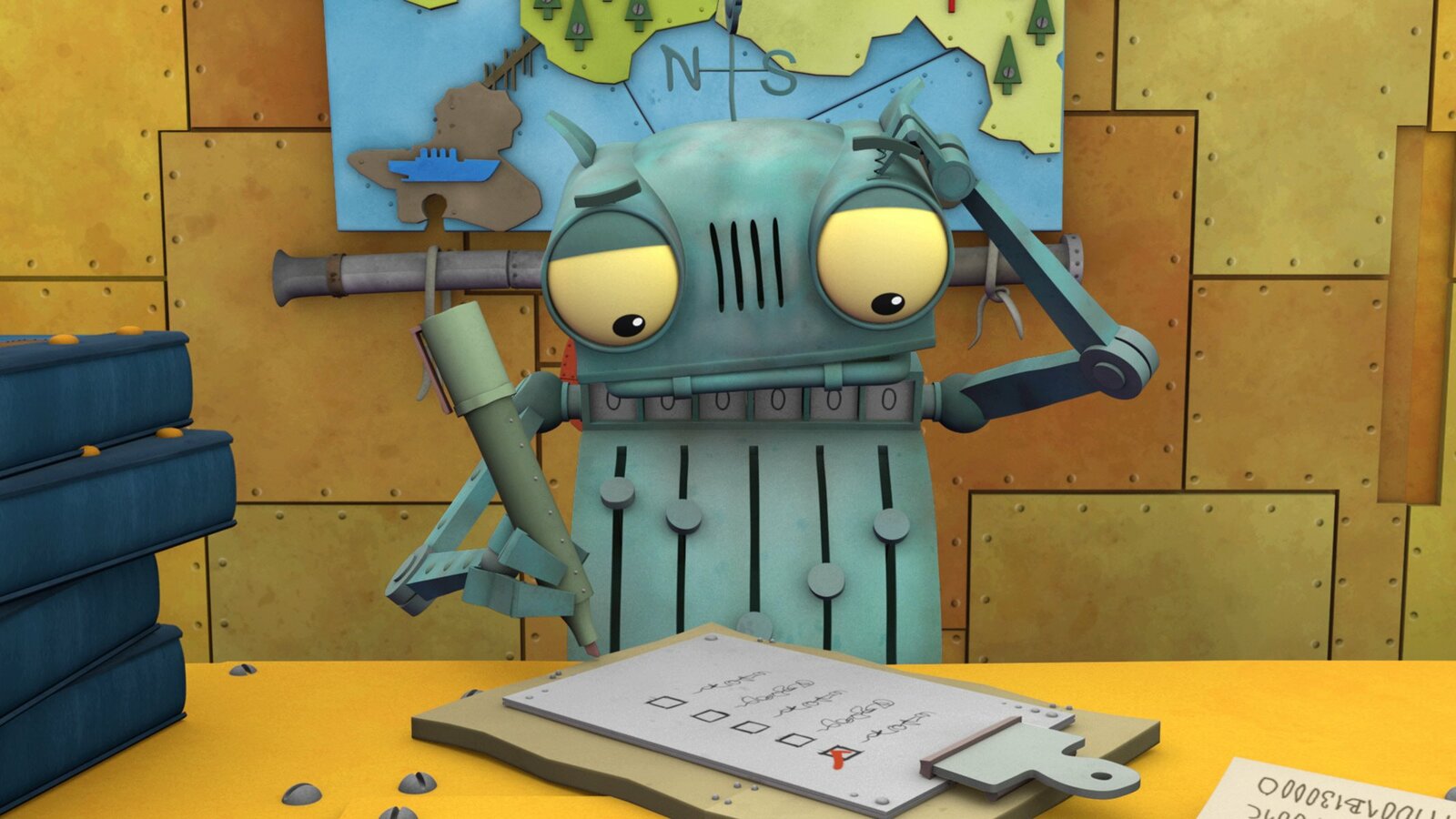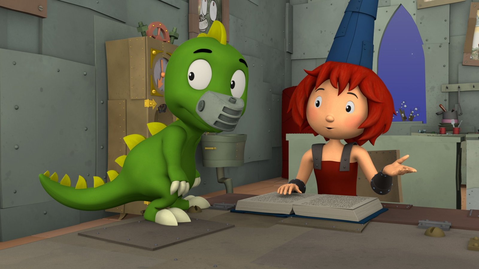 Die AbschlussprüfungDrache Koks und Burgfräulein Bö wollen Ritter Rost beim Büffeln für seine Abschlussprüfung helfen.Bild: © ZDF/Caligari