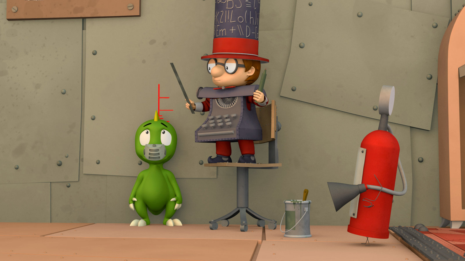 Eine Frage der Größe"Ritter Rost", "Eine Frage der Größe." Koks hat ein Problem: Er ist ganze 2 Millimeter gewachsen, womit er laut Hof-schreiber Ratzefummel ab sofort zur Kategorie der wirklich gefährlichen Drachen zu zählen ist und die Eiserne Burg verlassen muss. Rösti will das verhindern und beteuert, dass Koks doch nur ein "Haustier" ist. Doch das macht es nur noch schlimmer: Koks zieht beleidigt zu den Feuerzangenbrüdern, um sich zu einem echten Diplom-Drachen ausbilden zu lassen. Doch um die Prüfung zu bestehen, muss er den Regeln nach einen Ritter rösten.Bild: © ORF eins