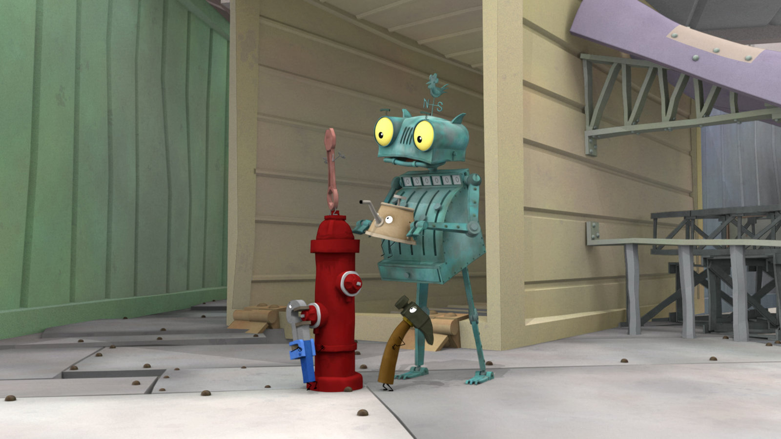 Die ÖlkriseRösti und seine Helfer-Werkzeuge machen sich große Sorgen, denn im ganzen Land wird das Öl knapp.Bild: © ZDF/Caligari