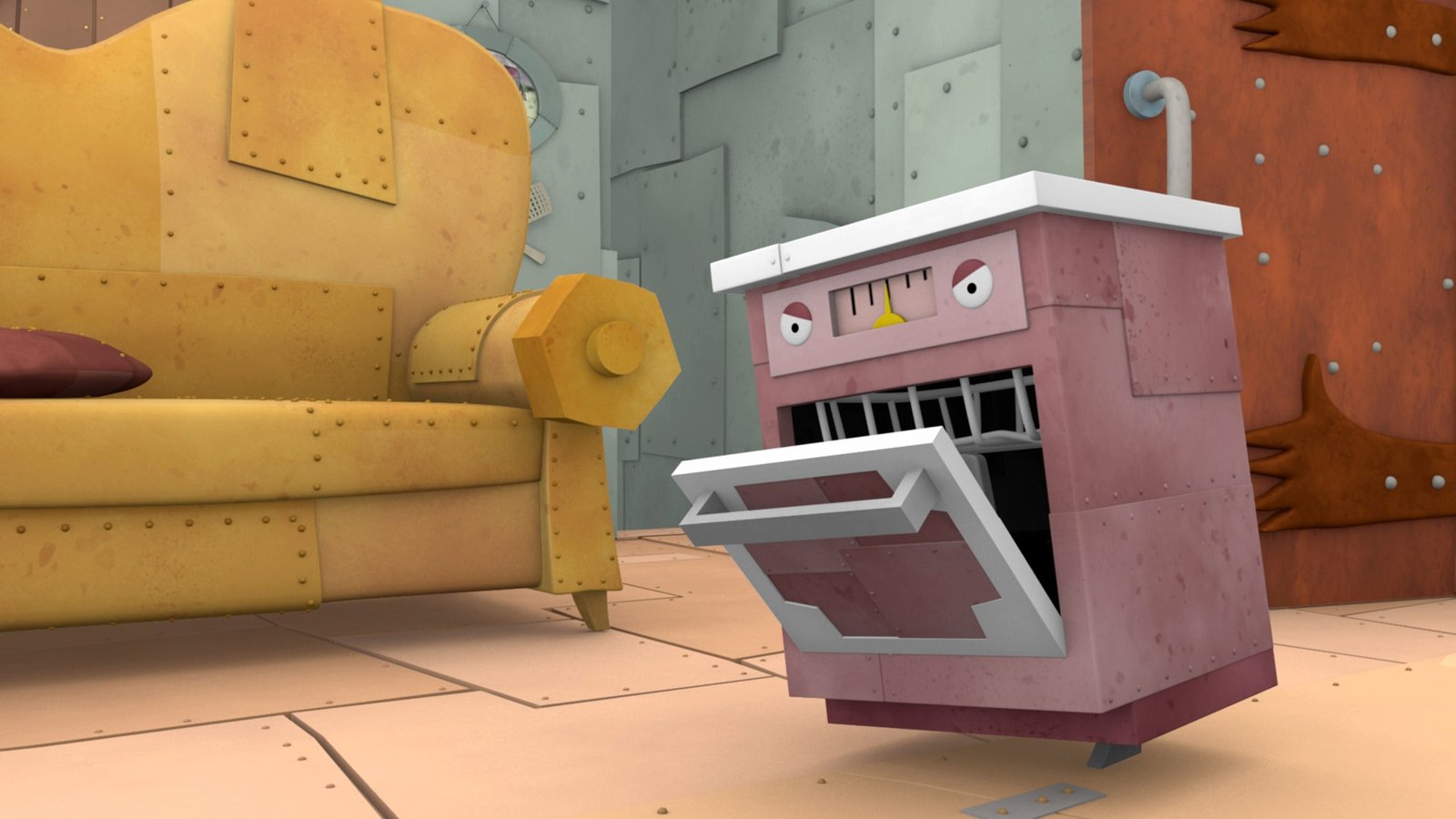 GeisterstundeDie sprechende Spülmaschine verhält sich nicht gerade freundlich.Bild: © ZDF/Caligari