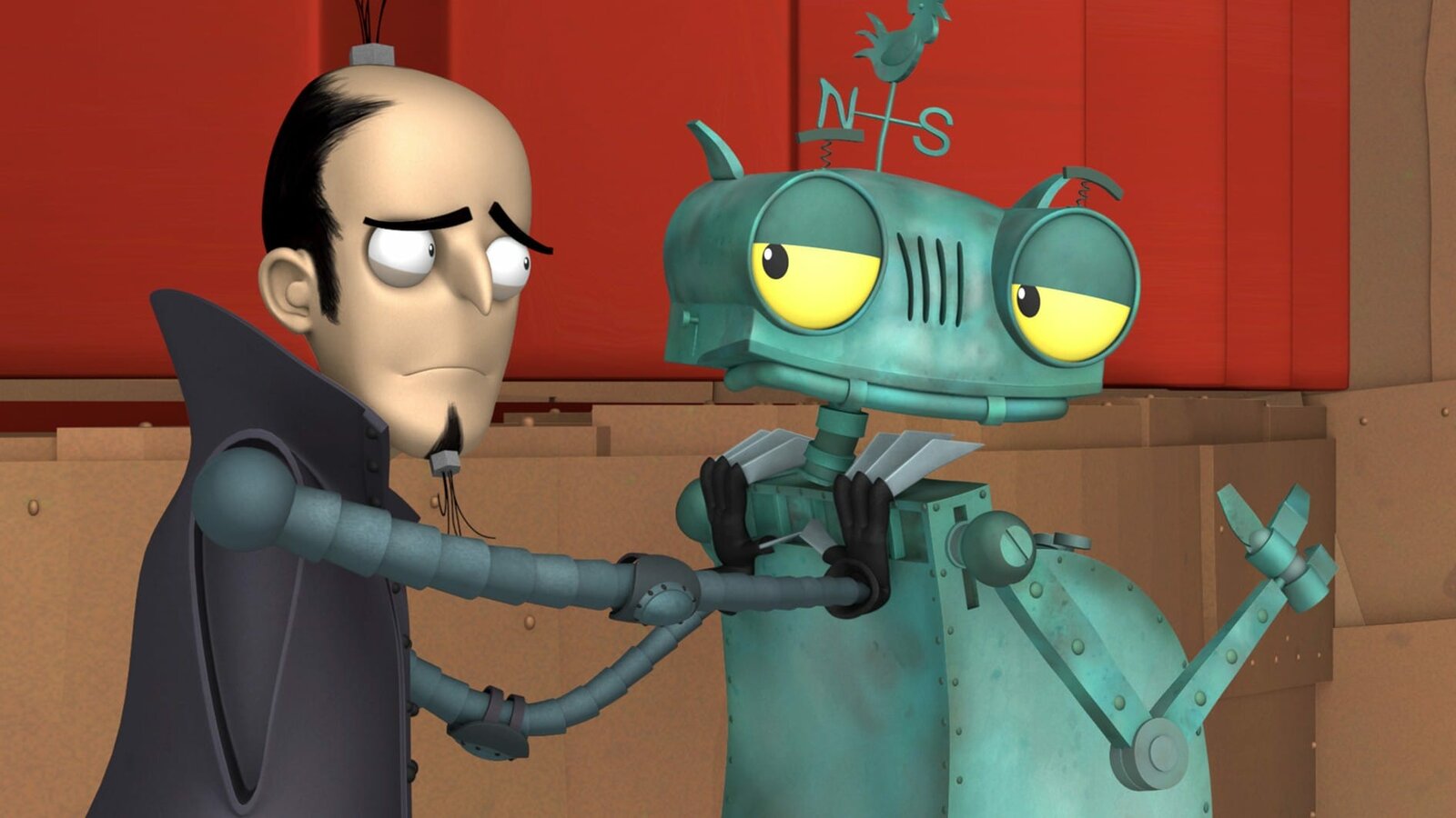 Der BabysitterAls Bö das Baby wieder abholt, sind die ansonsten so starken Feuerzangenbrüder tatsächlich etwas traurig.Bild: © ZDF und Caligari