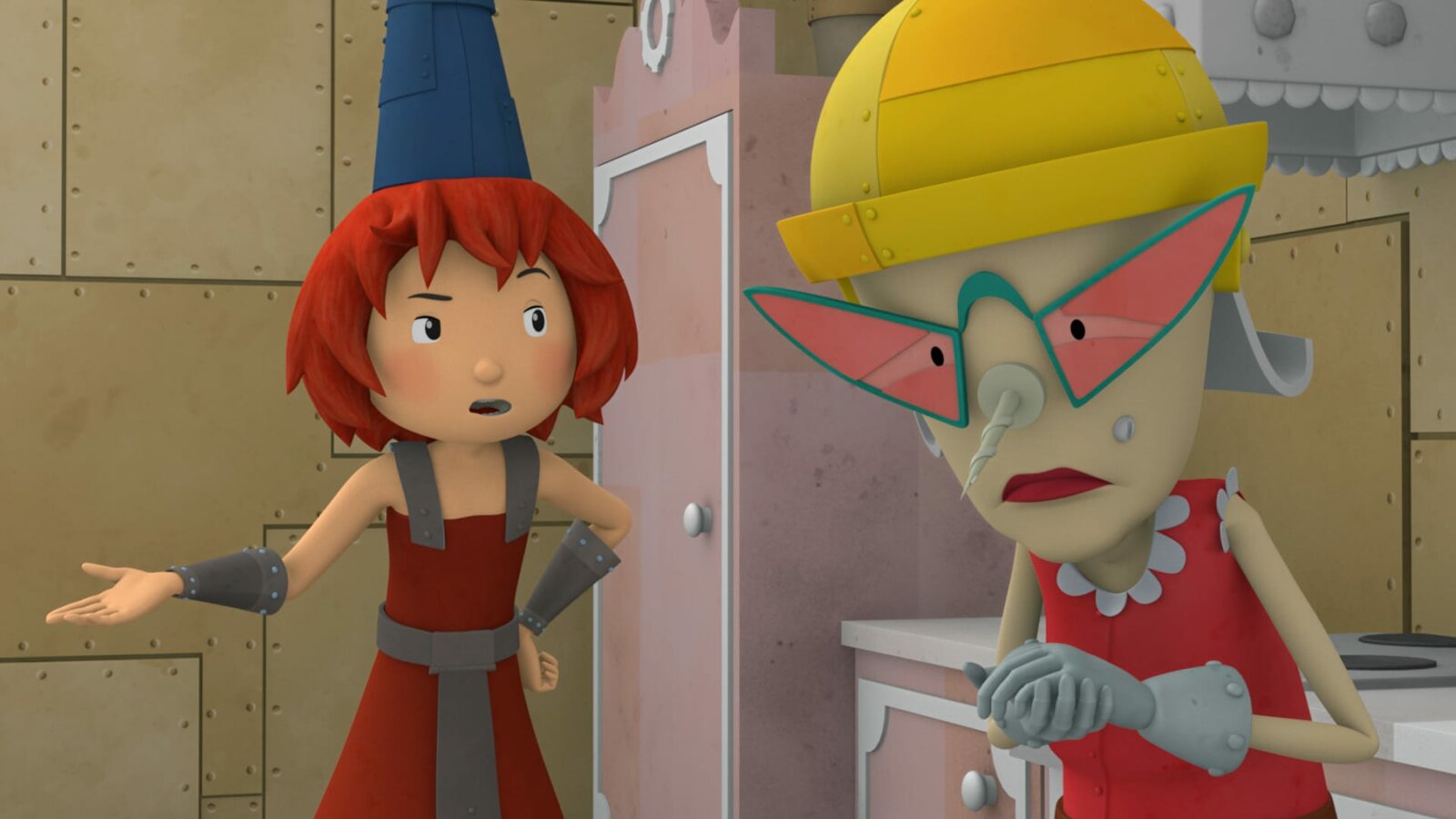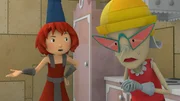 Das verrückte KloBurgfräulein Bö staunt darüber, was Rösti gerade angestellt hat.Bild: © ZDF/Caligari