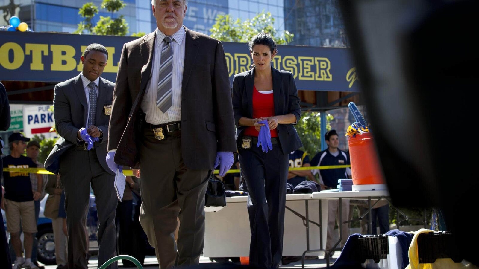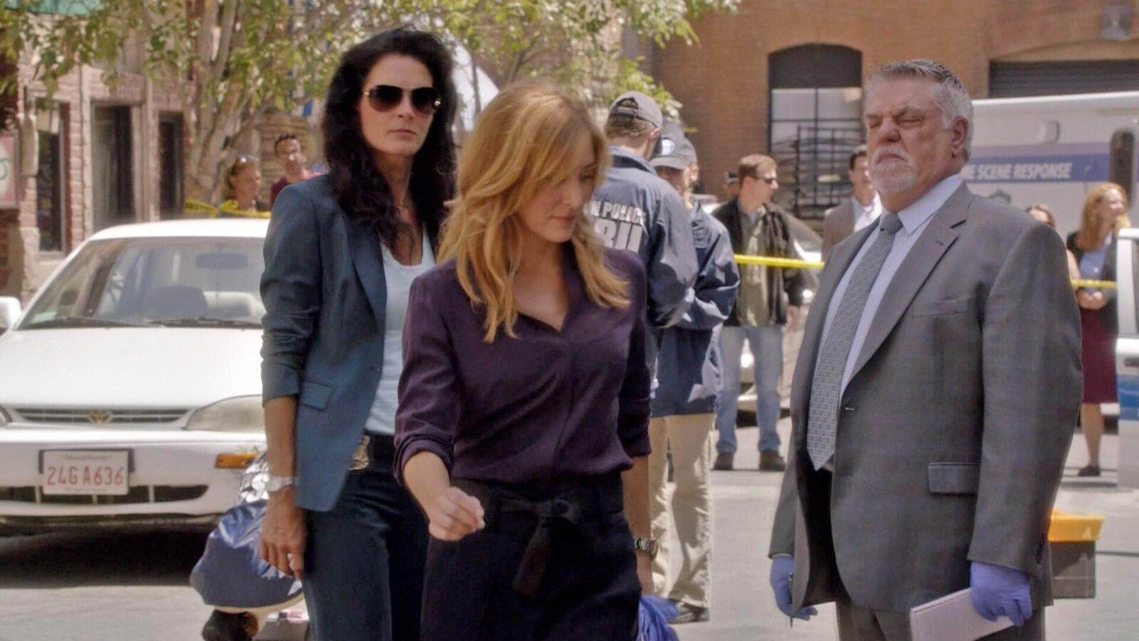 GejagtBei einer Schießerei auf offener Straße wird ein Mann getötet. Bei diesem handelte es sich jedoch um einen Auftragkiller... wer jagt wen? Dr. Maura Isles (Sasha Alexander), Det. Jane Rizzoli (Angie Harmon, l.) und Det. Vince Korsak (Bruce McGill) untersuchen den Tatort.Bild: © RTL