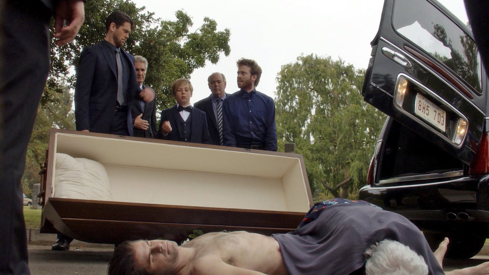 Ein Sarg für zweiIn dem Sarg einer alten Dame wird die unbekleidete Leiche ihres Bestatters entdeckt...Bild: © VOX / Warner Bros