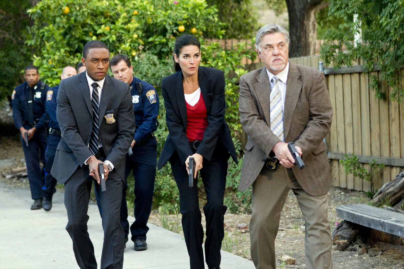 Andere UmständeDie tote Joggerin: Nachdem die Detectives Vince Korsak (Bruce McGill), Frankie Rizzoli (Jordan Bridges, M.) und Jane Rizzoli (Angie Harmon) einen Raubüberfall ausschließen können, entdecken sie in der Nähe des Tatorts einen Kinderwagen - jedoch fehlt von dem Baby jede Spur...Bild: © VOX