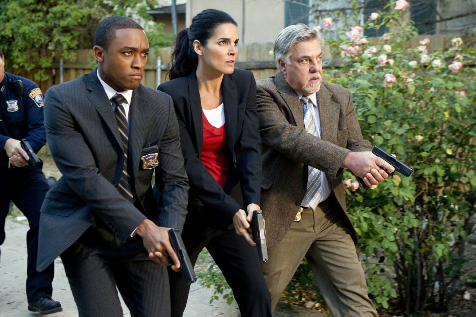 HinterhaltV.l.: Ein Scharfschütze treibt sein Unwesen und hat bereits mehrere Menschen auf dem Gewissen. Fieberhaft ermitteln Dr. Maura Isles (Sasha Alexander), Det. Jane Rizzoli (Angie Harmon) und Frankie Rizzoli Jr. (Jordan Bridges).Bild: © VOX/Warner Bros.