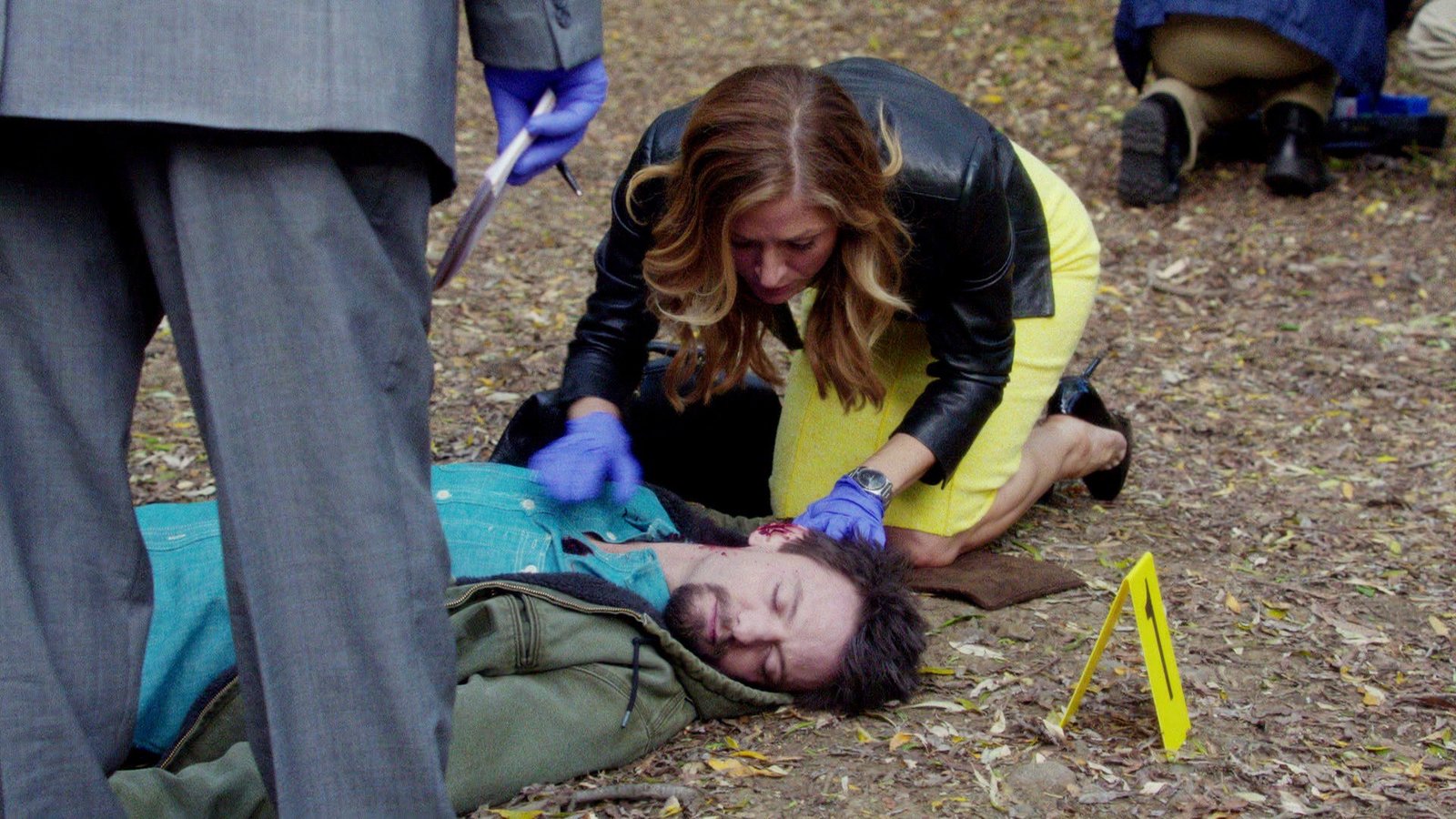Tod im ParkMaura Isles (Sasha Alexander) schaut sich die Leiche eines jungen Mannes (Darsteller unbekannt) genauer an. Das Opfer wurde erschossen und verstarb noch in dem Park.Bild: © VOX