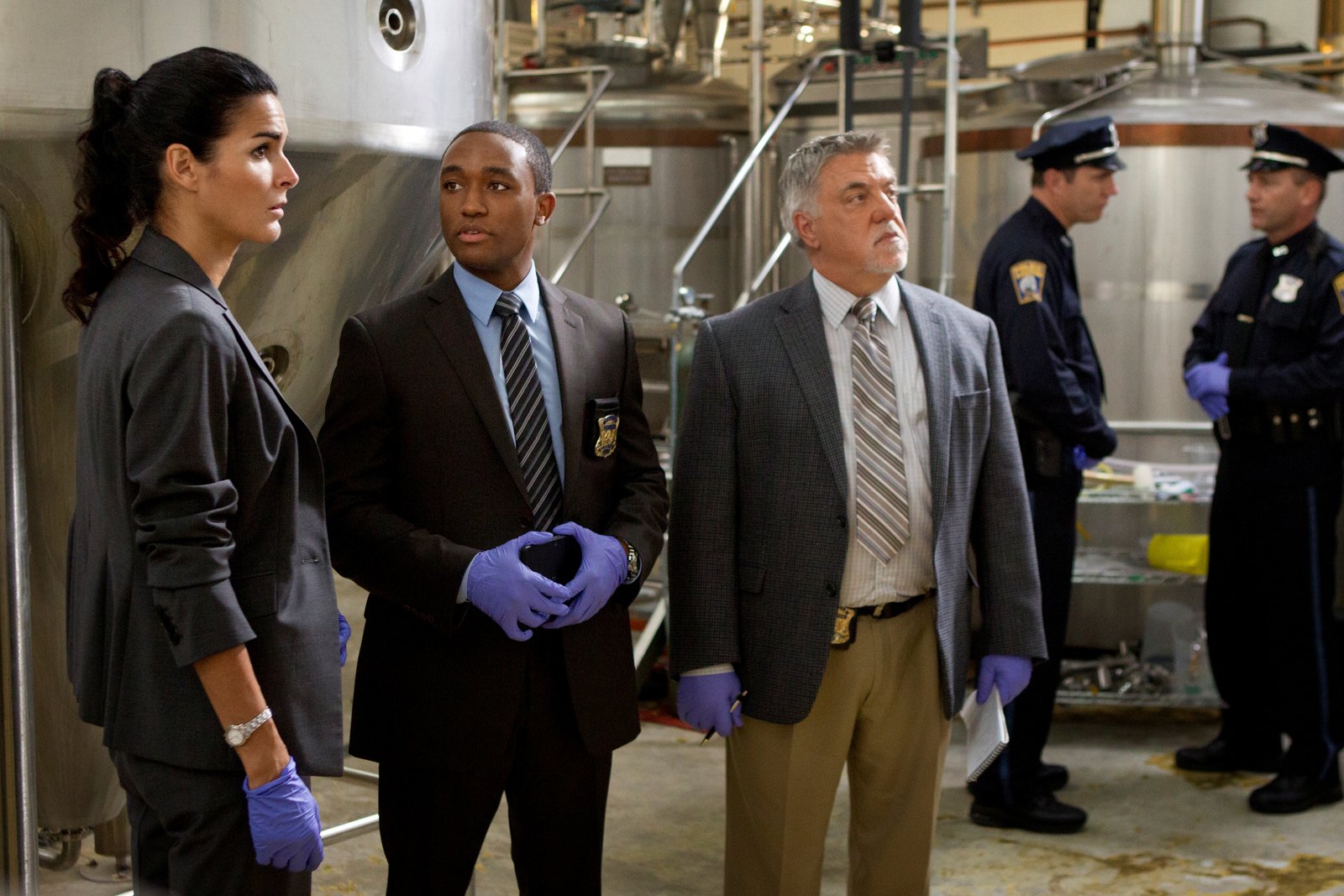 Hinter der MaskeDet. Vince Korsak (Bruce McGill) und Det. Jane Rizzoli (Angie Harmon) ermitteln in einem Mordfall: Was verbindet einen toten Bierbrauer mit einem Wikinger-Speer?Bild: © Turner / TM & (C)TURNER ENTERTAINMENT NETWORKS, INC. A TIME WARNER COMPANY. ALL RIGHTS RESERVED.