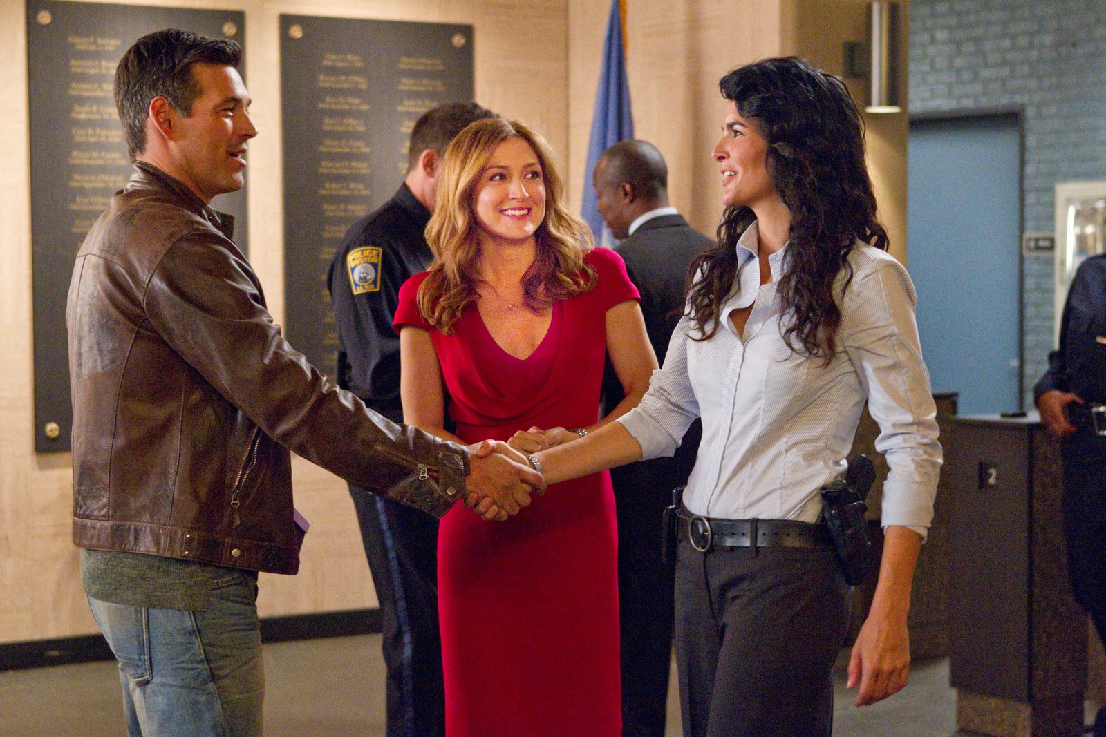 TraumaV.l.: Dennis Rockmond (Eddie Cibrian), Dr. Maura Isles (Sasha Alexander), Det. Jane Rizzoli (Angie Harmon)Bild: © Turner / TM & (C)TURNER ENTERTAINMENT NETWORKS, INC. A TIME WARNER COMPANY. ALL